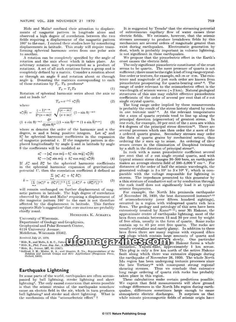 This issue of Nature features research on the displacement of magnetic patterns and its correlation with seismic activity, proposing the piezoelectric effect in the Earth's crust a
