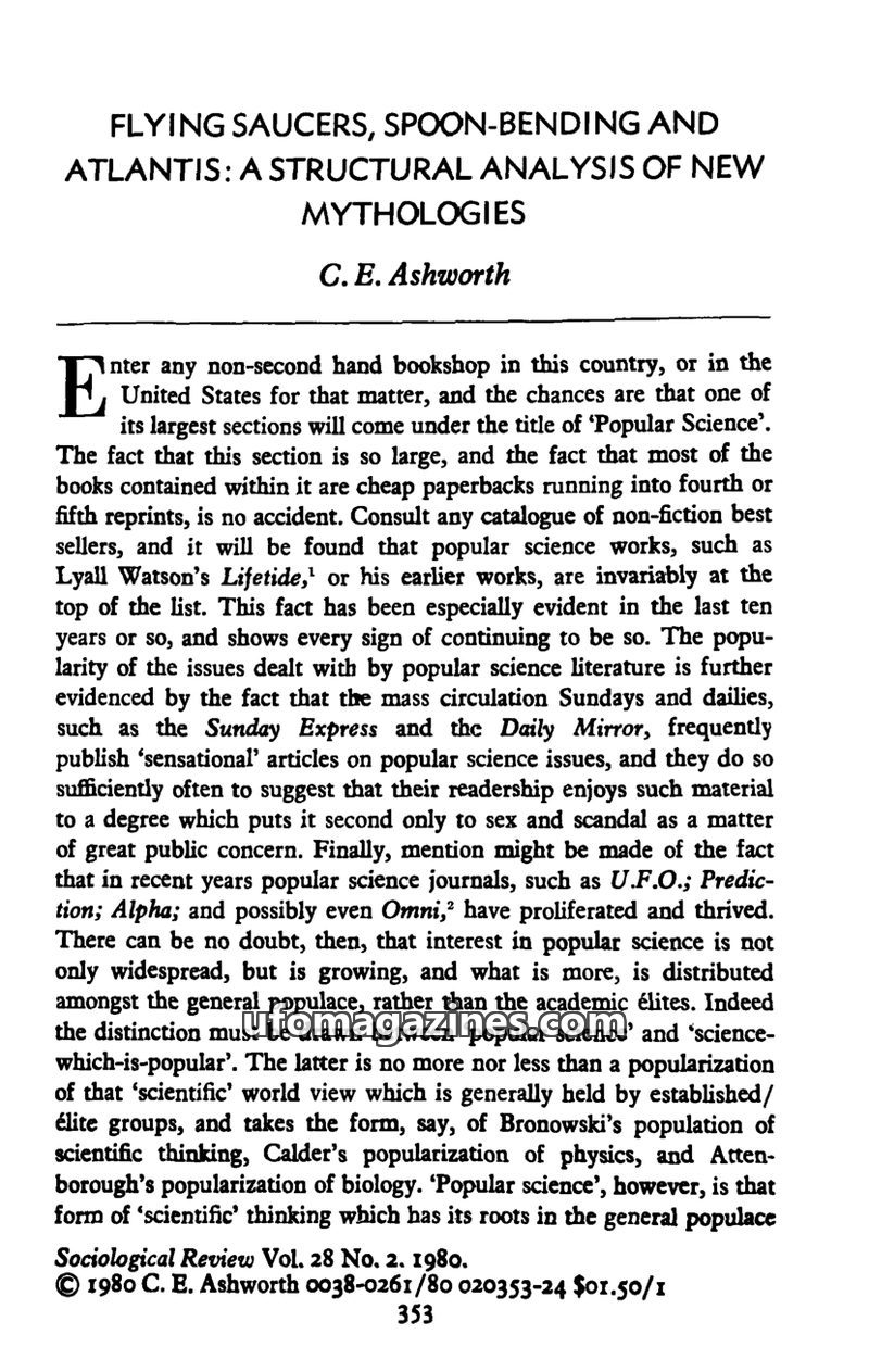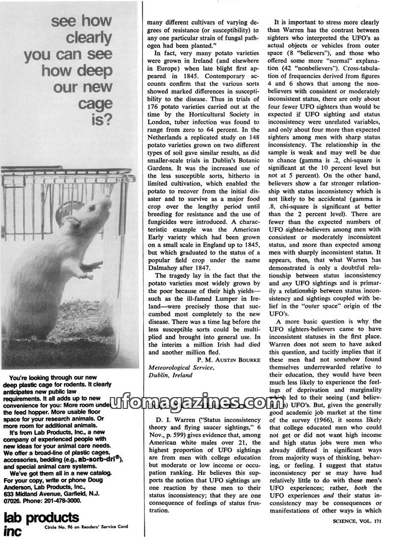 This issue of Science Magazine features discussions on the sociological theory linking UFO sightings to status inconsistency, with critiques and alternative explanations focusing o
