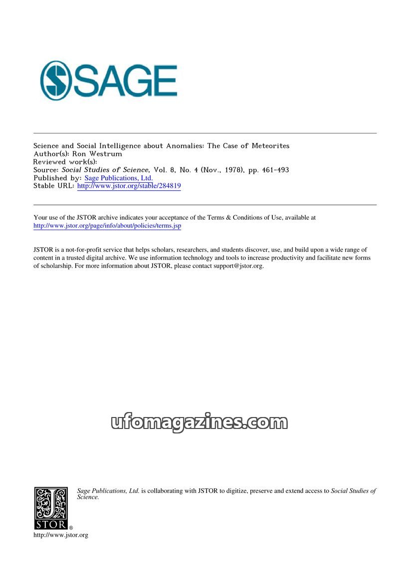 This article examines the social system of 'social intelligence' that transmits reports of anomalies, particularly UFOs, to the public and scientists. It discusses how this system