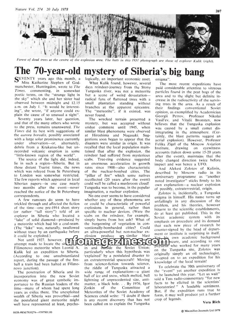 Seventy years ago, a mysterious event in Siberia, now known as the Tunguska explosion, caused widespread devastation. Initial reports were limited, but later expeditions, notably b