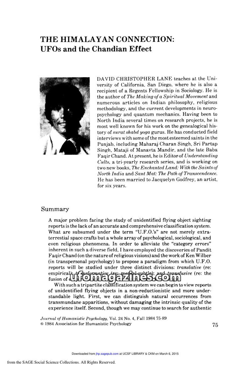 This article from The Journal of Social Psychology (1971) investigates the connection between a person's motivation for affiliation and their belief in extraterrestrial UFOs. The s