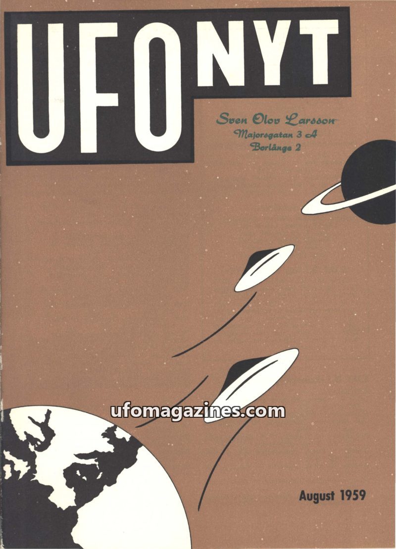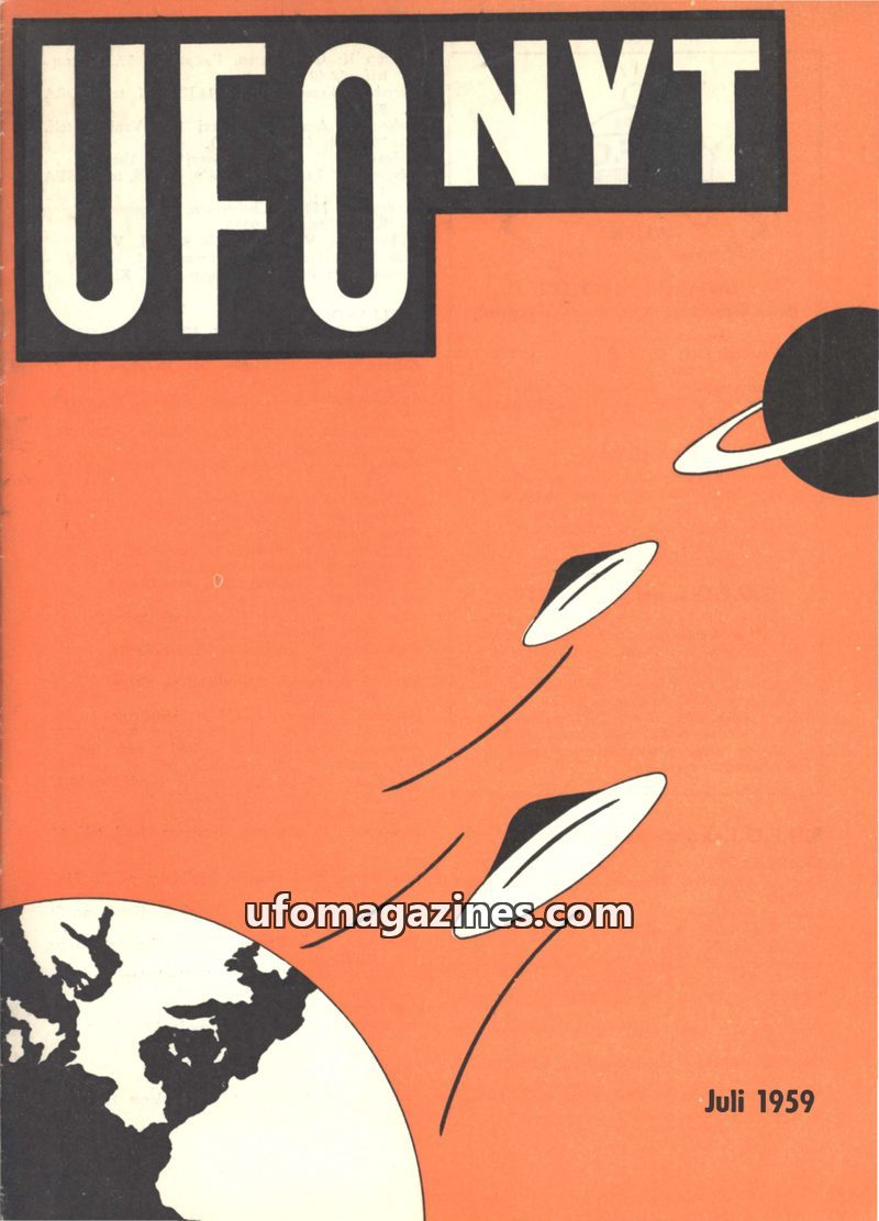 This issue of UFO-NYT, published in July 1959, features a wide range of topics related to UFO phenomena and space. It includes reports on alleged UFO sightings in Japan and Europe,