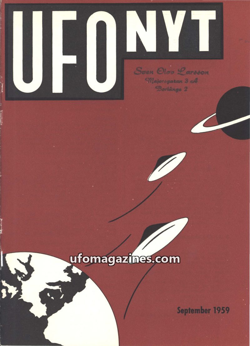 This issue of UFONYT from September 1959 delves into UFO phenomena and related research. It features a detailed report from a Danish radio amateur who detected unusual signals and