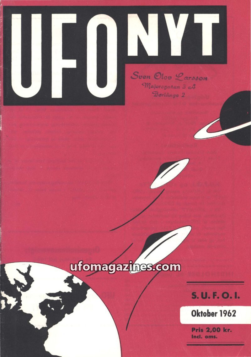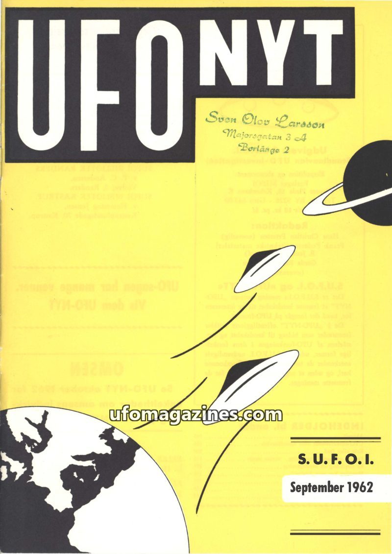 This issue of UFO NYT from September 1962 covers recent UFO observations in Scandinavia, including detailed reports from Denmark and Sweden. It also delves into the serious implica