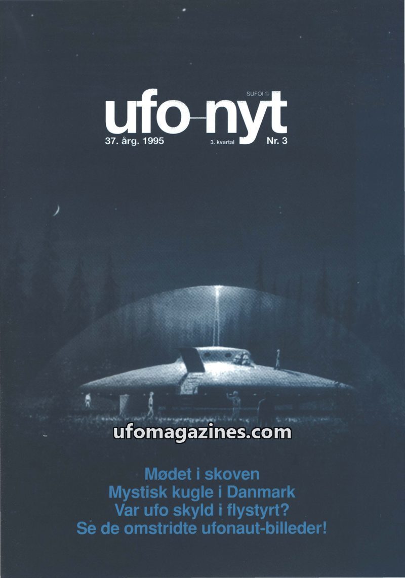 This issue of UFO-Nyt from 1995 covers several UFO-related topics. It includes a new Danish UFO photograph, an account of a mysterious light observed over Aalborg, and an investiga