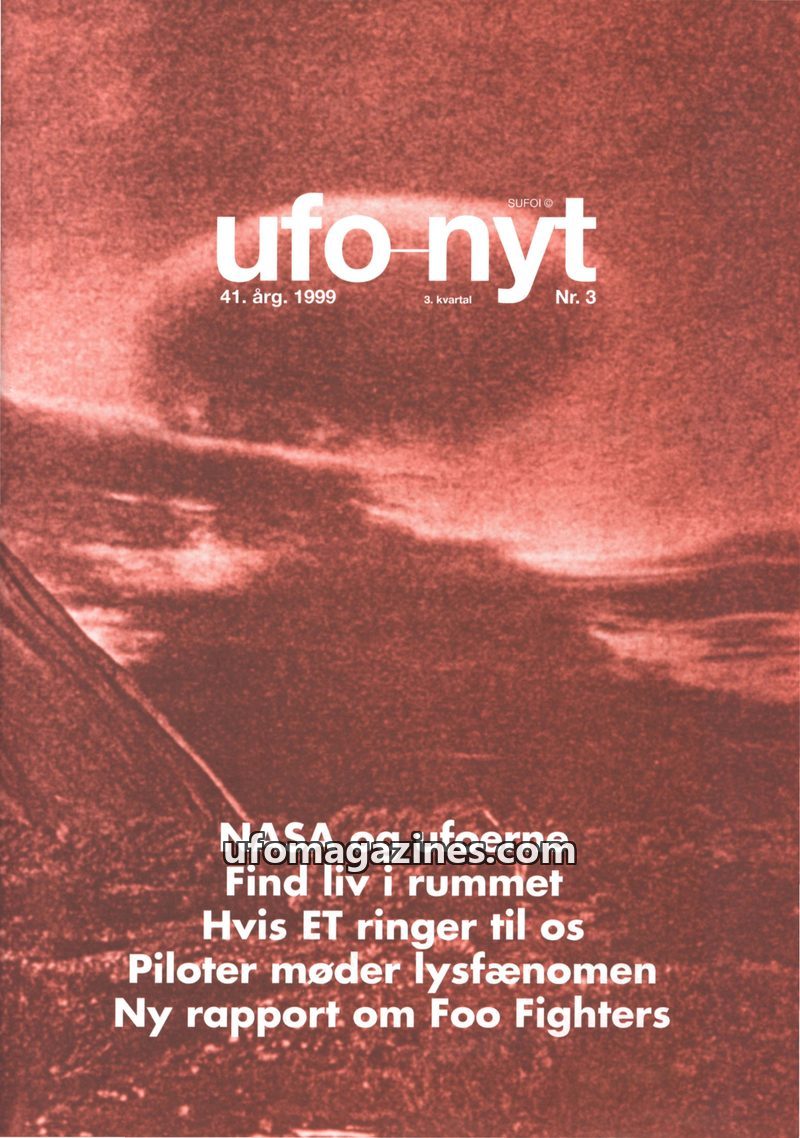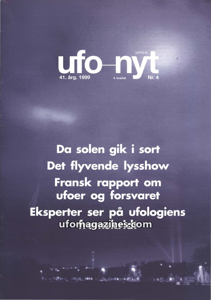 This issue of UFO-Nyt, dated 4th quarter 1999, features several articles on UFO phenomena. A prominent report details a mysterious red light observed over Solrød Strand, Denmark, w