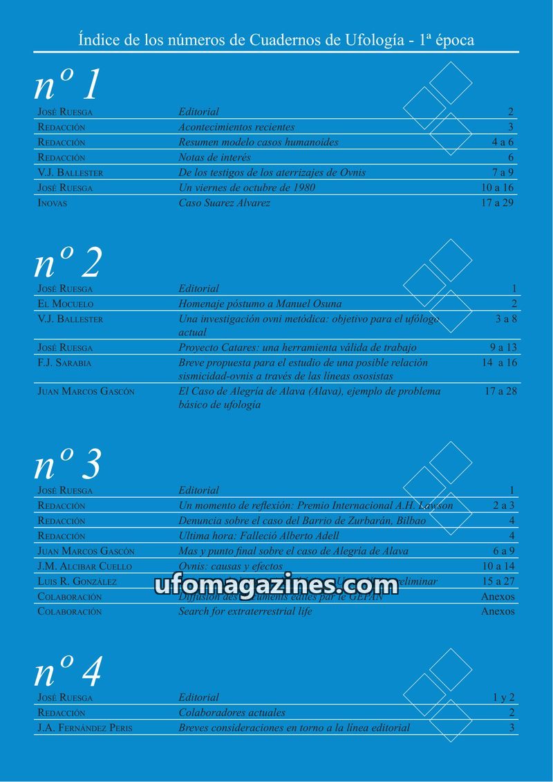 0 - Cuadernos de Ufologia - 1a epoca - indices