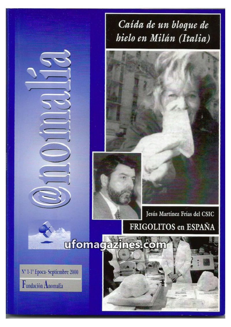 This issue of @nomalía, dated September 2000, covers a variety of unexplained phenomena. It reports on a block of ice falling in Milan, Italy, and a similar occurrence in Austria.