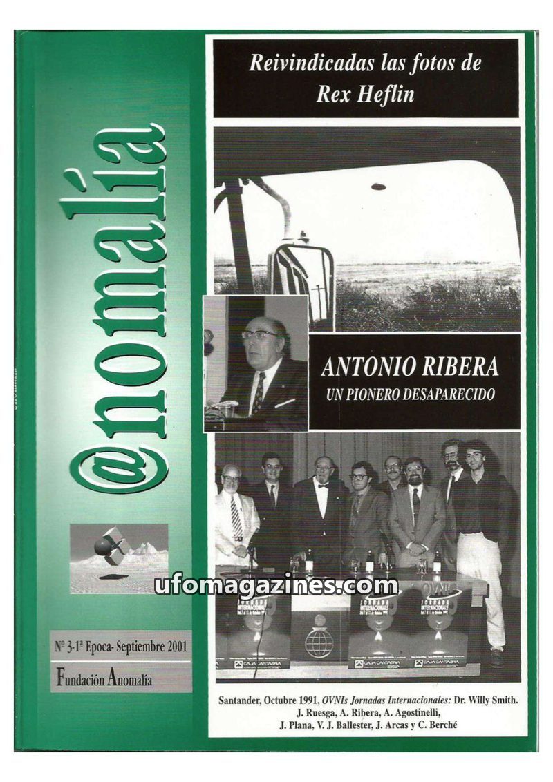 This issue of @nomalía, published by Fundación Anomalía in September 2001, delves into various anomalous phenomena. It features articles on a UFO incident at Barnaul airport, a sig
