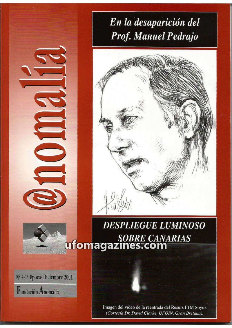 This issue of Anomalía magazine, dated December 2001, focuses on the disappearance of Professor Manuel Pedrajo and a luminous phenomenon over the Canary Islands. It also features a