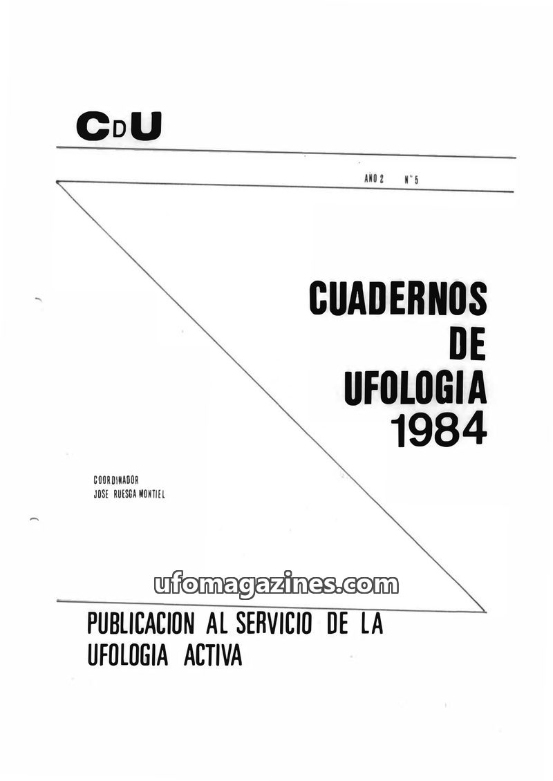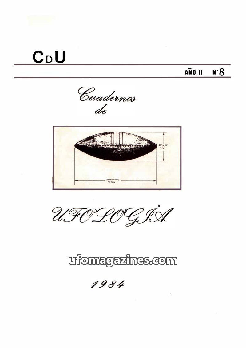 This issue of Cuadernos de Ufología (CdU) from December 1984, Año II, N° 8, serves as a summary of the activities of an informal group of UFO investigators. The editorial reflects