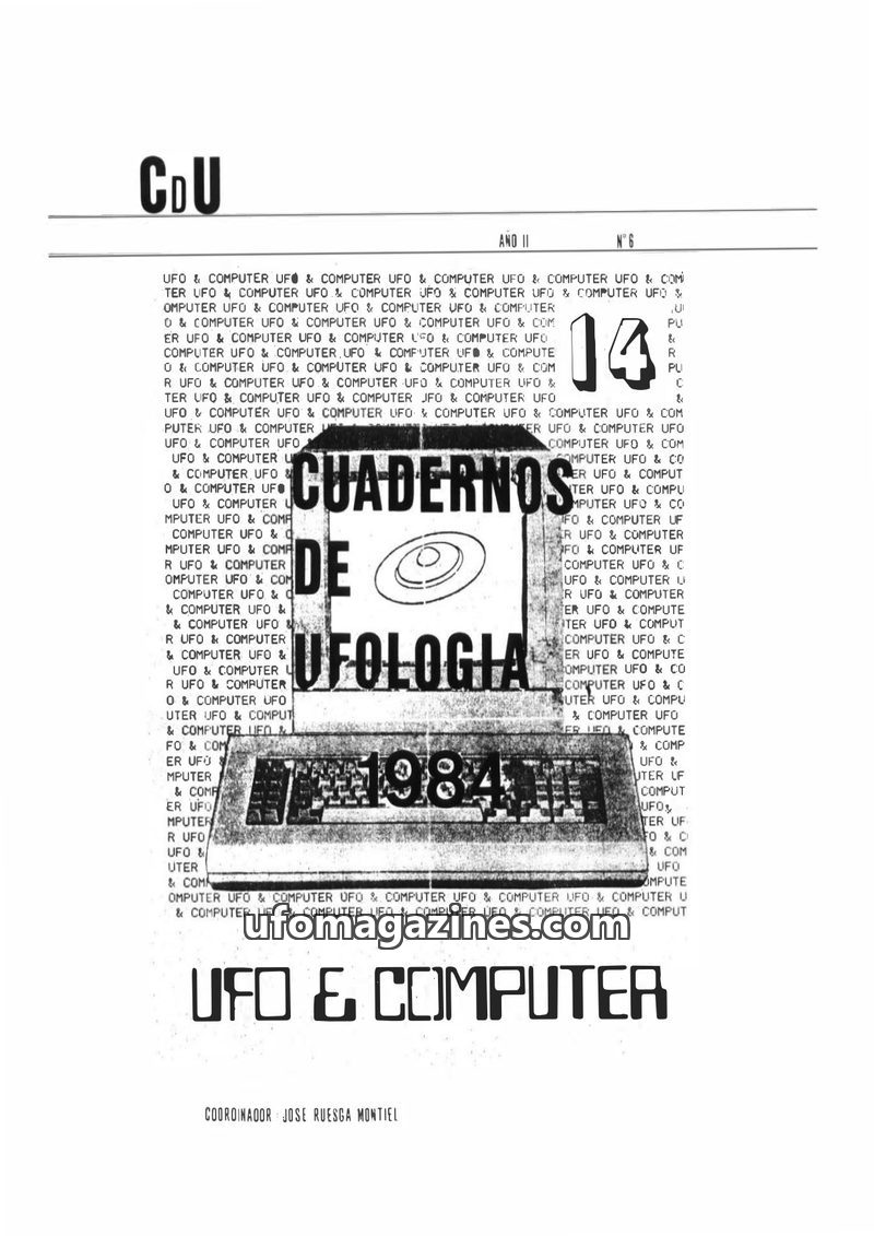 This issue of CUADERNOS DE UFOLOGIA (June 1984) focuses on the relationship between UFOs and computers, as well as other ufological topics. It includes an editorial emphasizing uni
