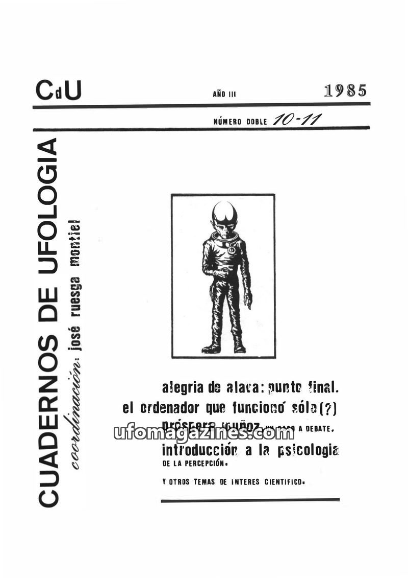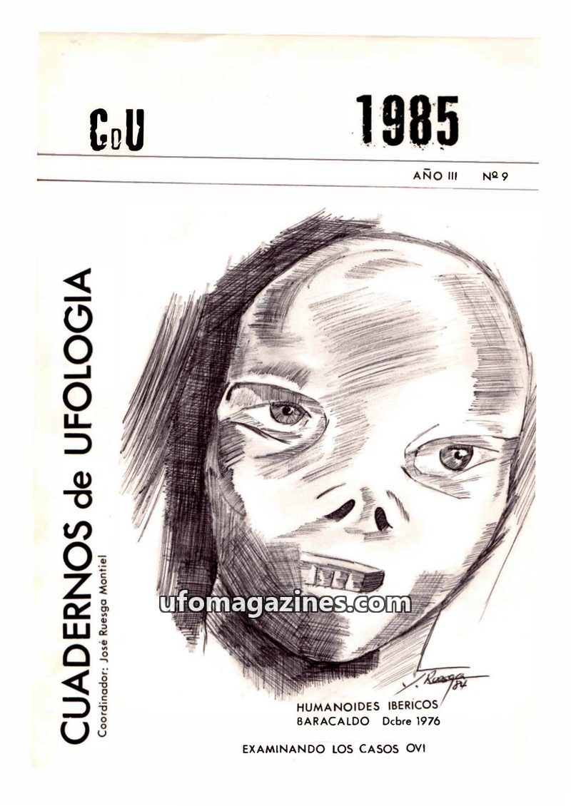 This issue of CUADERNOS de UFOLOGIA focuses on the 1976 Baracaldo humanoid sighting case, investigating the event through media reports and attempts to contact witnesses. The artic