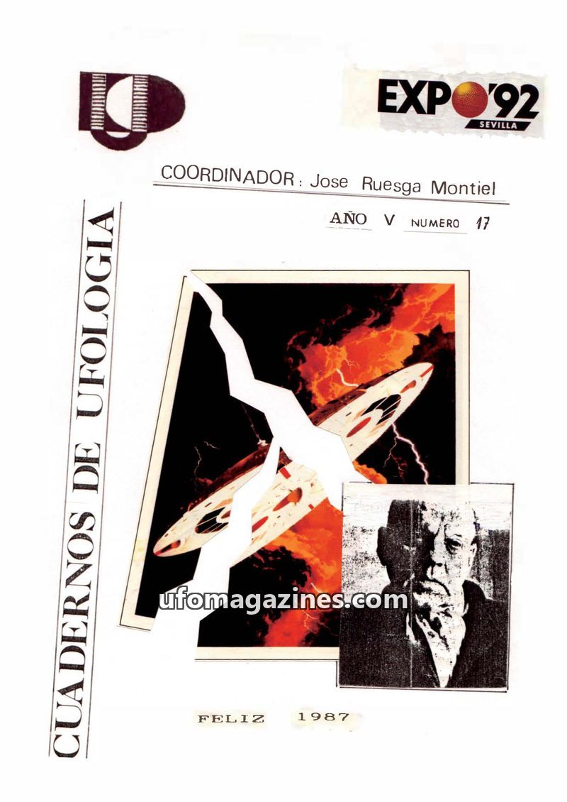 This issue of Cuadernos de Ufologia, Volume V, Number 17, dated 1987, is coordinated by Jose Ruesga Montiel. It includes articles discussing the UNICAT project, UFOs in homes, phys