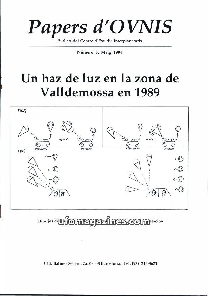 This issue of Papers d'OVNIS (May 1994) focuses on a 1989 UAP sighting in Valldemossa, Spain, detailing witness accounts and an investigator's analysis of the object's shape and be