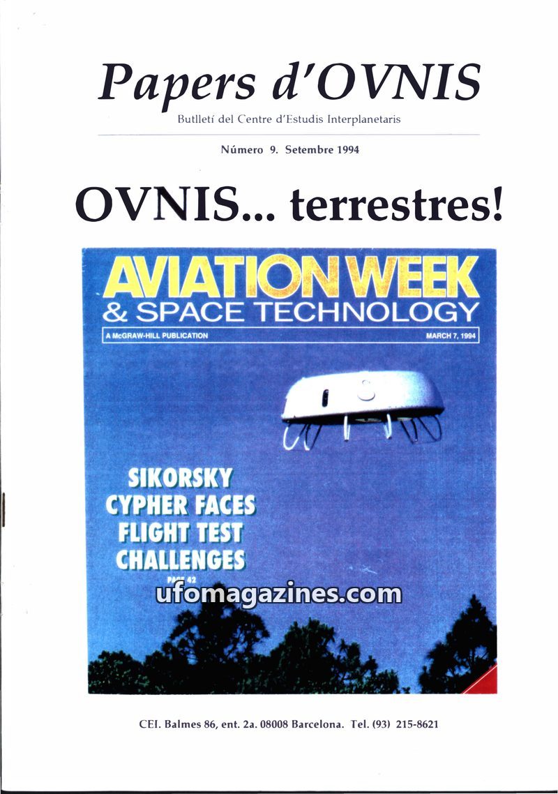 This issue of Papers d'OVNIS, published in September 1994, delves into terrestrial UFO phenomena and the study of UFOs. It discusses the mission of the Centre d'Estudis Interplanet