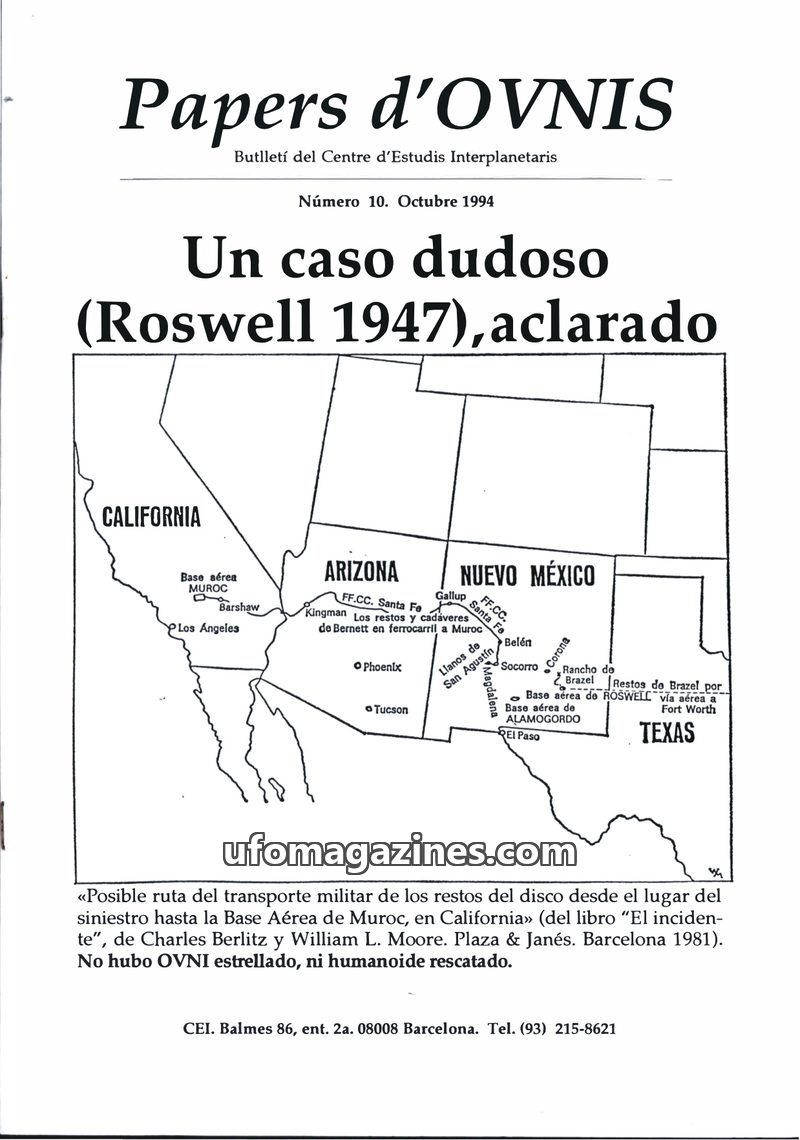 This issue of Papers d'OVNIS focuses on the clarification of the Roswell 1947 incident, presenting evidence that the recovered debris was from Project Mogul, a US military project,