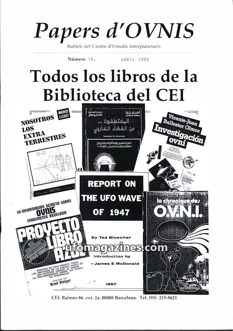 This issue of Papers d'OVNIS presents a comprehensive catalog of the Centre d'Estudis Interplanetaris (CEI) library, which contains over 500 entries on UFO phenomena and related to