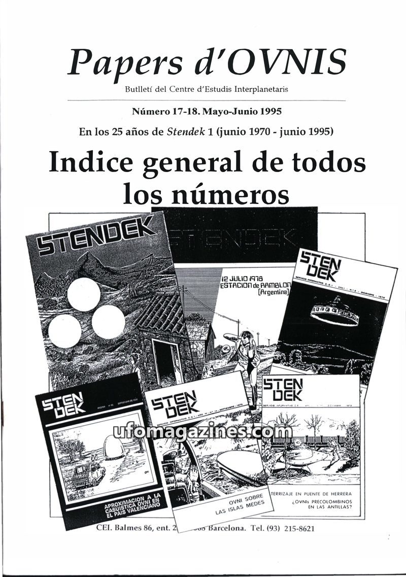 This issue of Papers d'OVNIS is a special index covering the first 25 years of Stendek (June 1970 - June 1995), a significant publication in Iberian ufology. It details all 46 issu