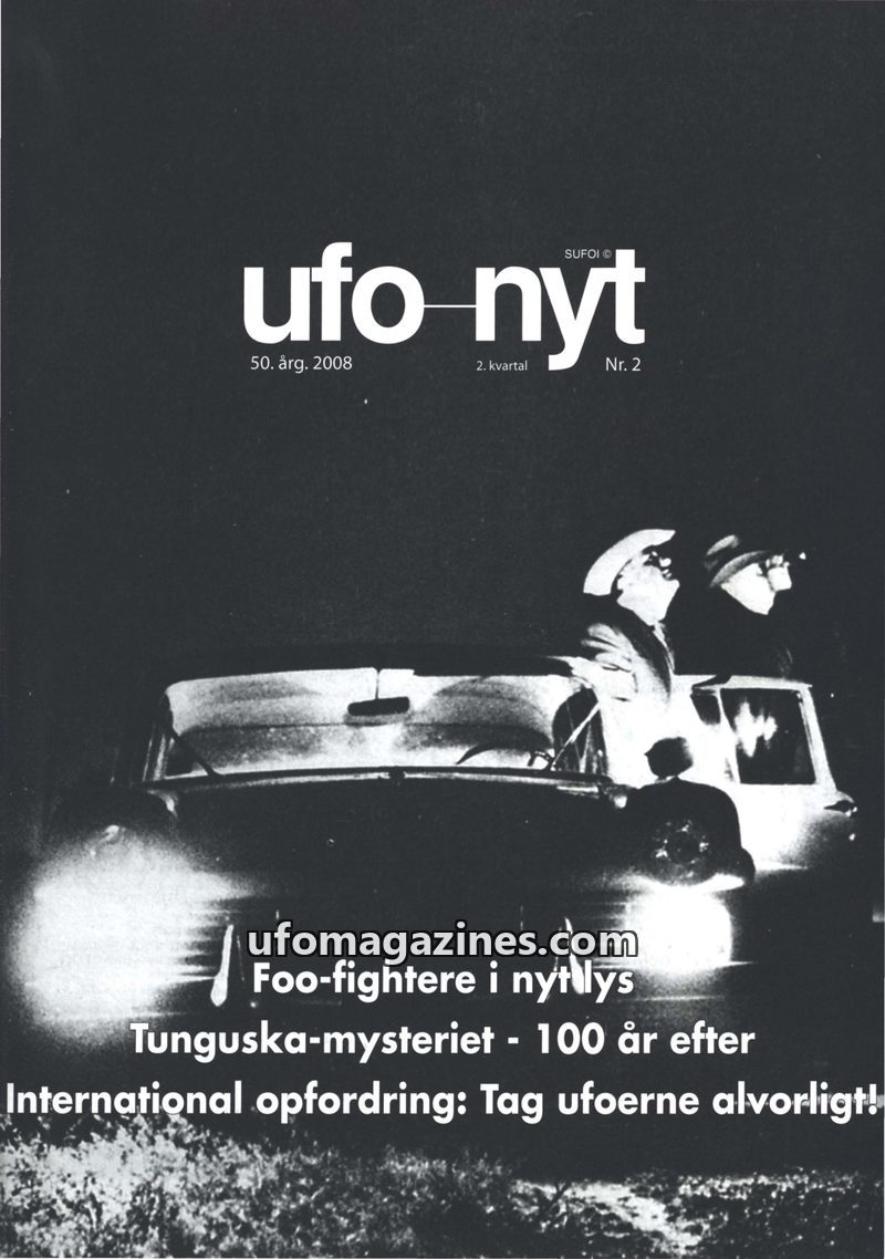 This issue of UFO-Nyt explores various UFO phenomena. It discusses the 'Foo-fighter' sightings and the Tunguska event 100 years later, presenting new research suggesting a smaller