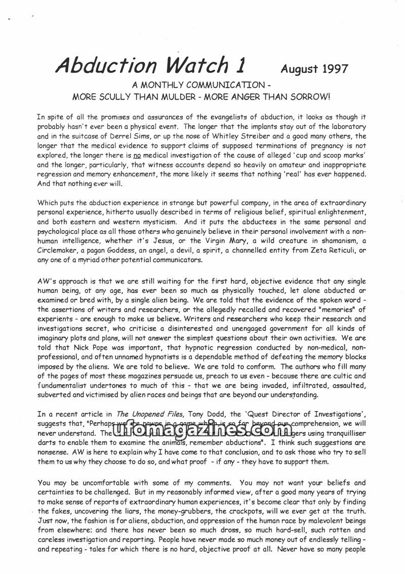 Abduction Watch - No 01 1997