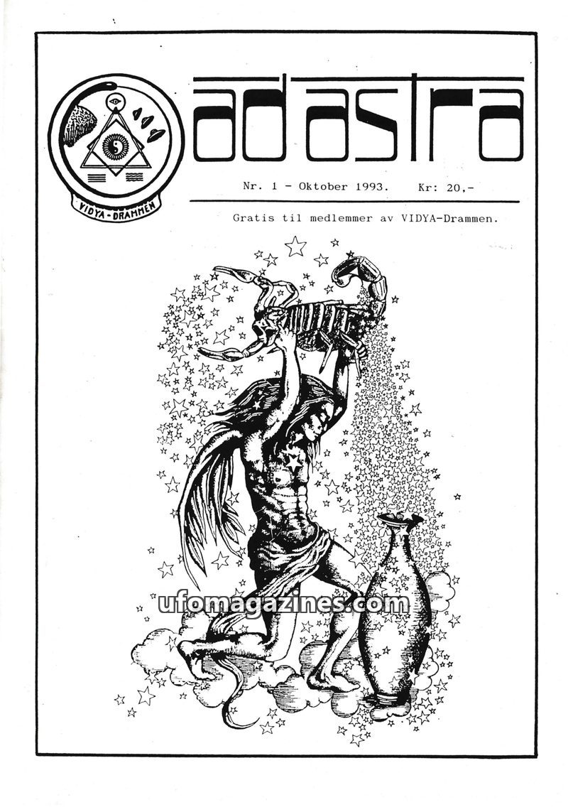 The October 1993 issue of Ad Astra, published by VIDYA-Drammen, features a variety of articles on esoteric topics. The editor's note addresses production delays and encourages read