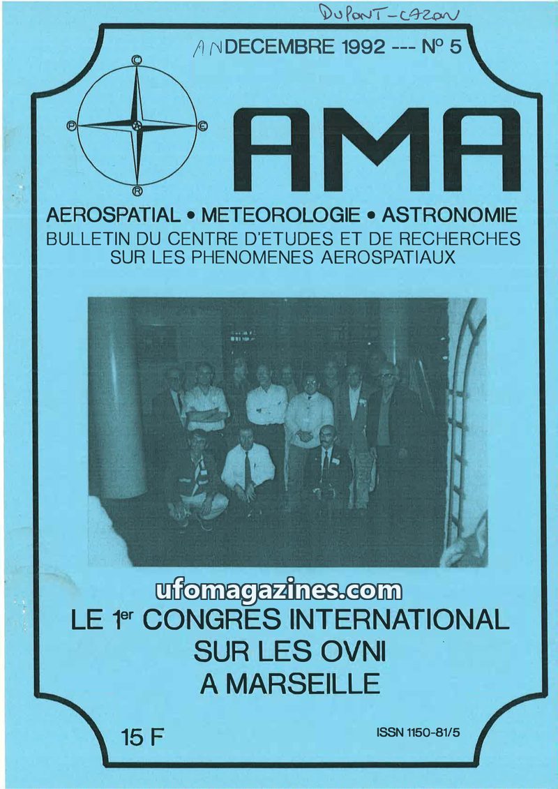 This issue of AMA magazine, dated December 1992, focuses heavily on the 1st International UFO Congress held in Marseille in October 1991, organized by CERPA. The congress featured