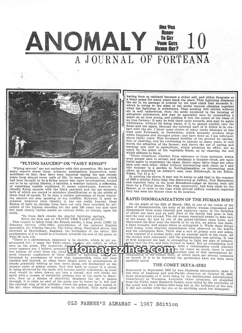 This issue of Anomaly delves into various unexplained phenomena, including historical accounts of 'fairy rings' linked to lightning and modern UFO sightings. It discusses the rapid