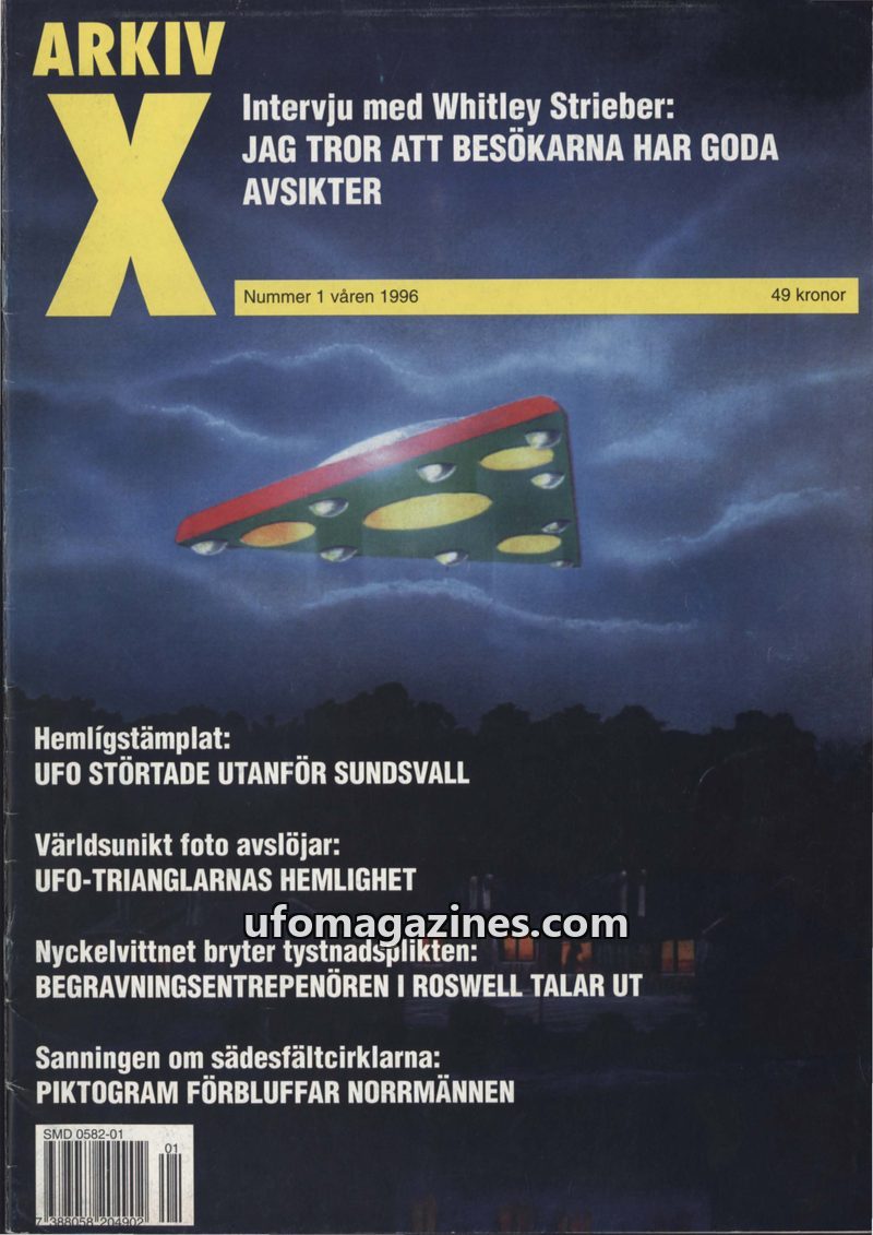 This issue of ARKIV magazine delves into various UFO phenomena. It features an interview with Whitley Strieber, a report on a UFO crash near Sundsvall, Sweden, in 1995, and an anal