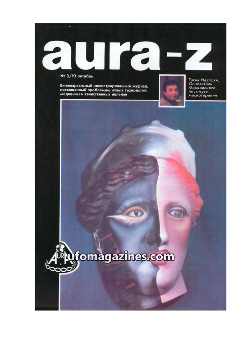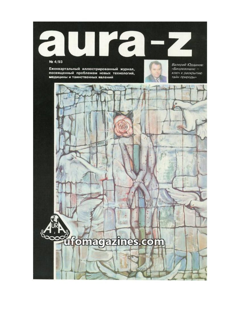 This issue of Aura-Z magazine, dated 4/93, delves into UFOlogy and mysterious phenomena. It features an interview with Valeriy Yordanov on bioresonance, highlights the art of Nikas