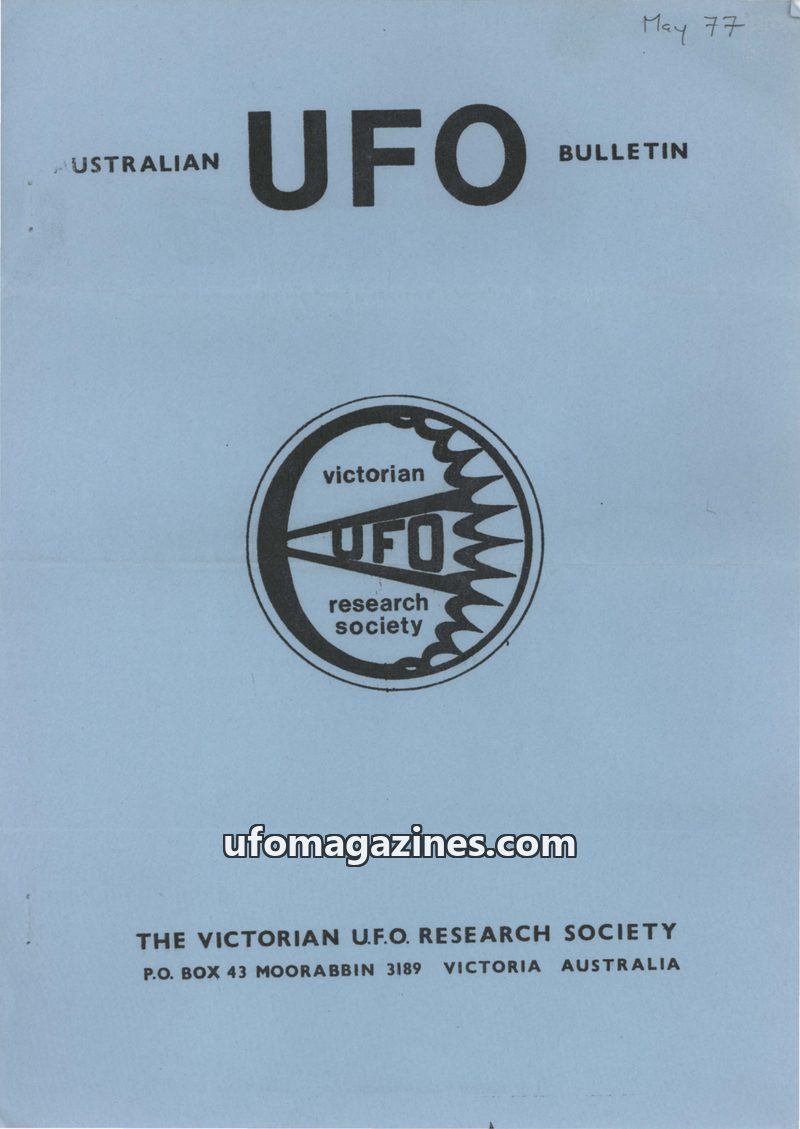 This issue of the Australian UFO Bulletin covers a range of UFO sightings and related phenomena from early 1977. Reports include a pacing object near Derrinallum, a ground circle i