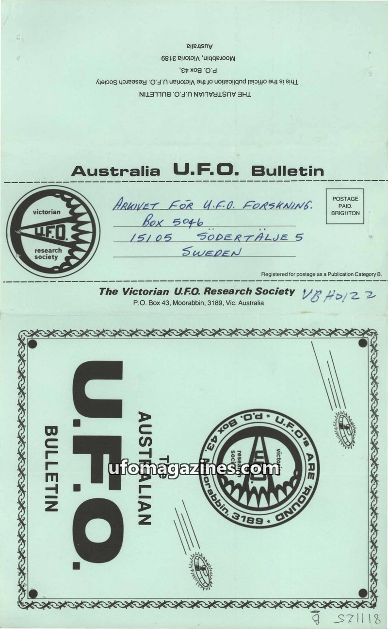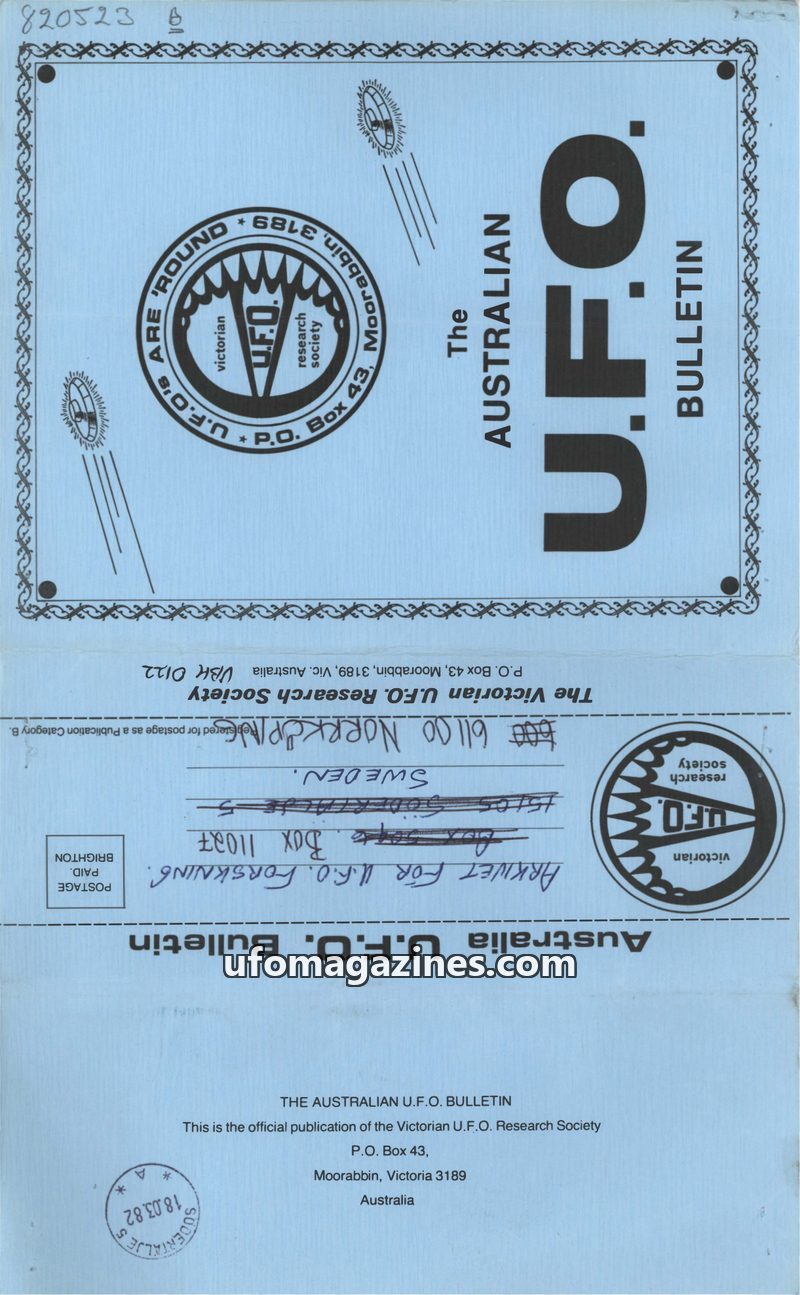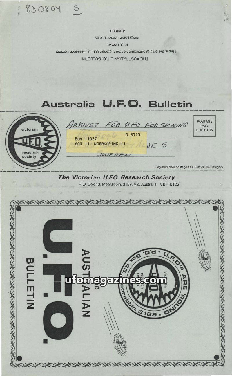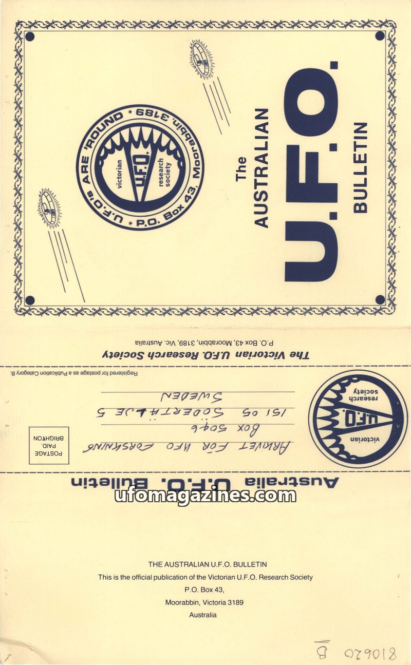 This issue of The Australian U.F.O. Bulletin covers several significant UFO-related events and research. It commemorates the fourth anniversary of Frederick Valentich's disappearan
