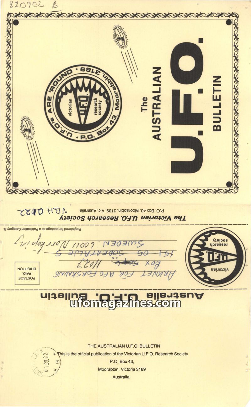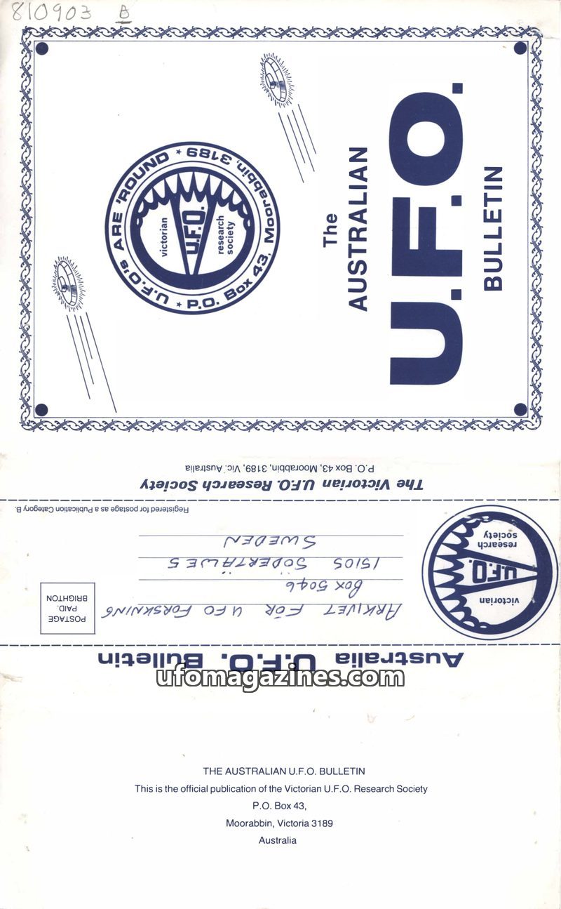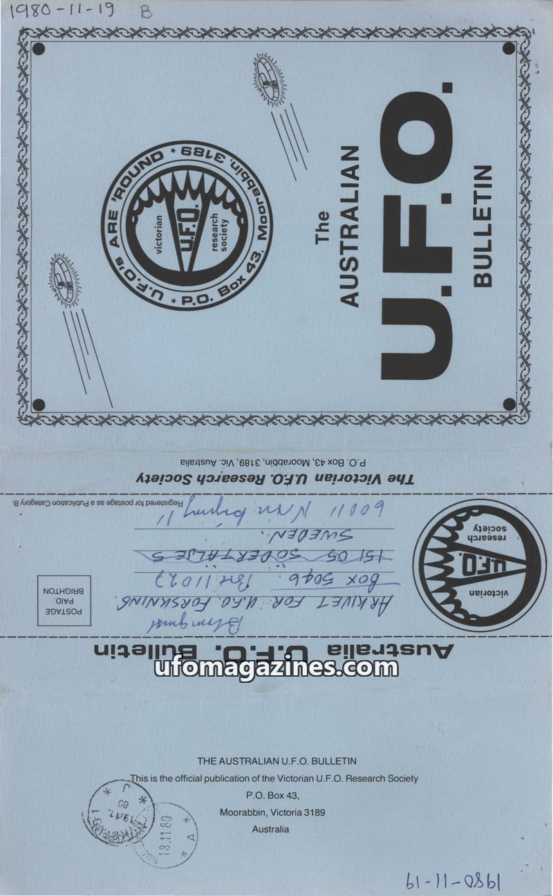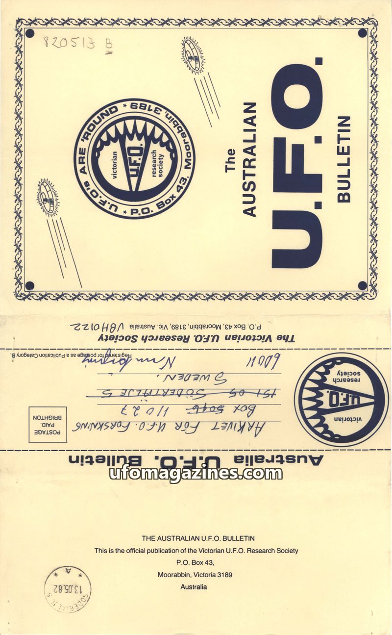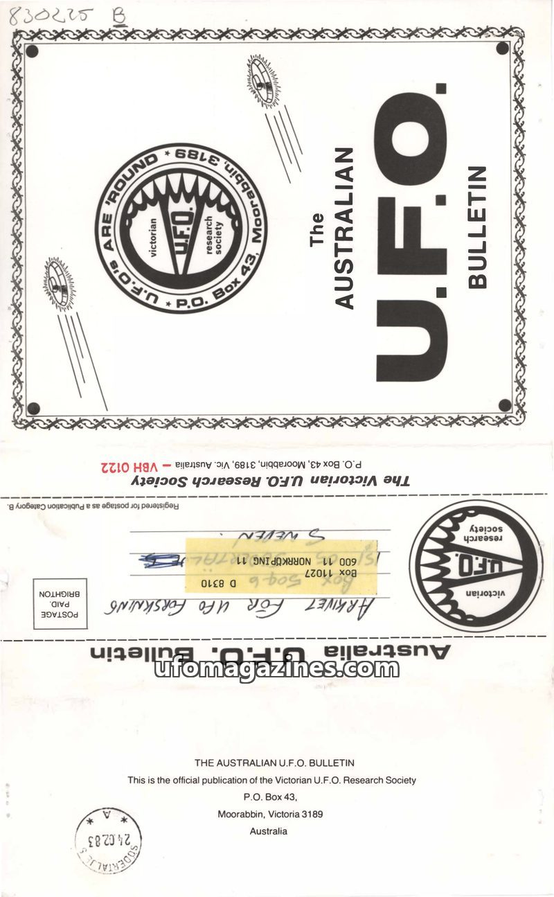 This issue of The Australian U.F.O. Bulletin covers several significant UFO-related events and research. It commemorates the fourth anniversary of Frederick Valentich's disappearan