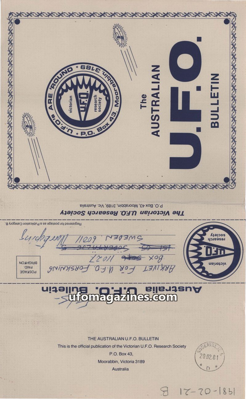 This issue of The Australian UFO Bulletin from March 1981 delves into the potential correlation between UFO sightings and earthquakes, suggesting shared triggers and phenomena. It