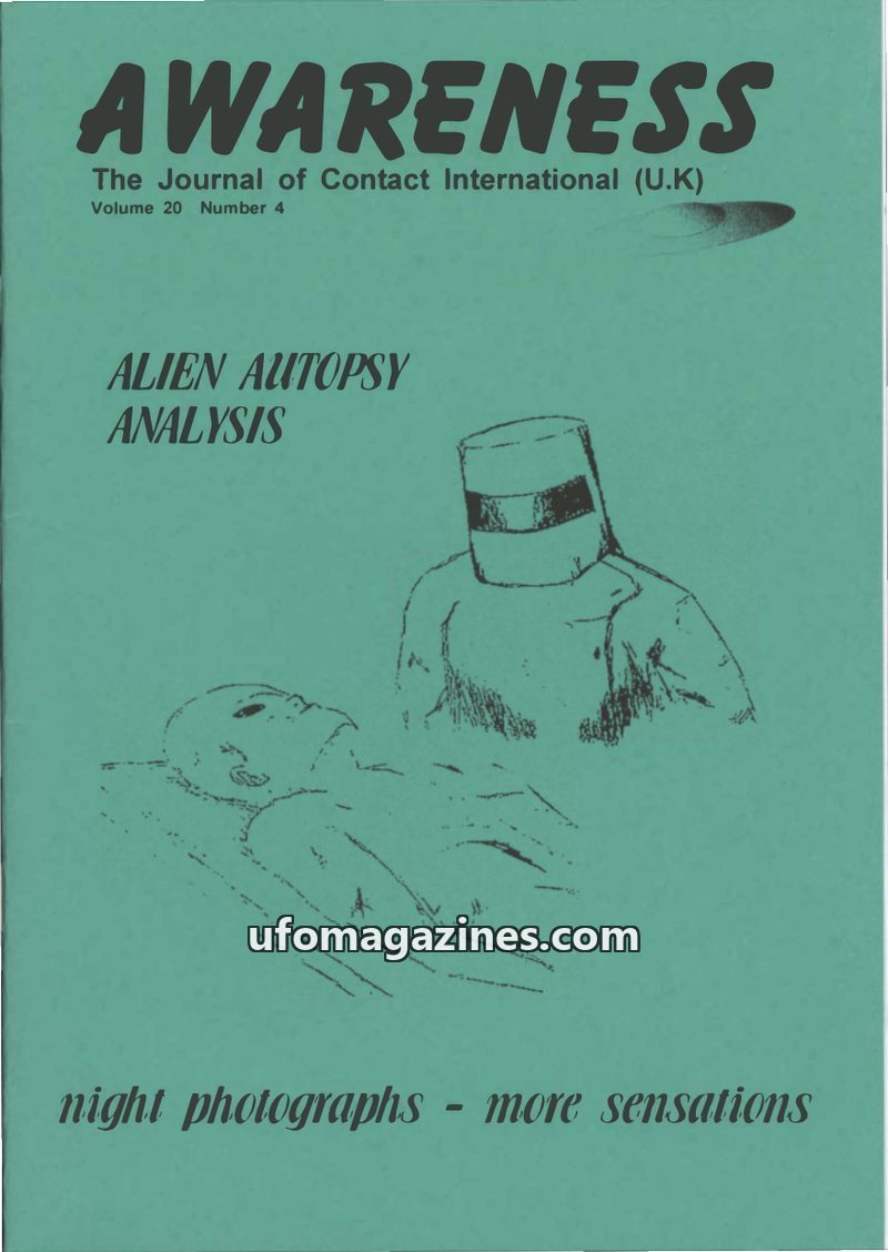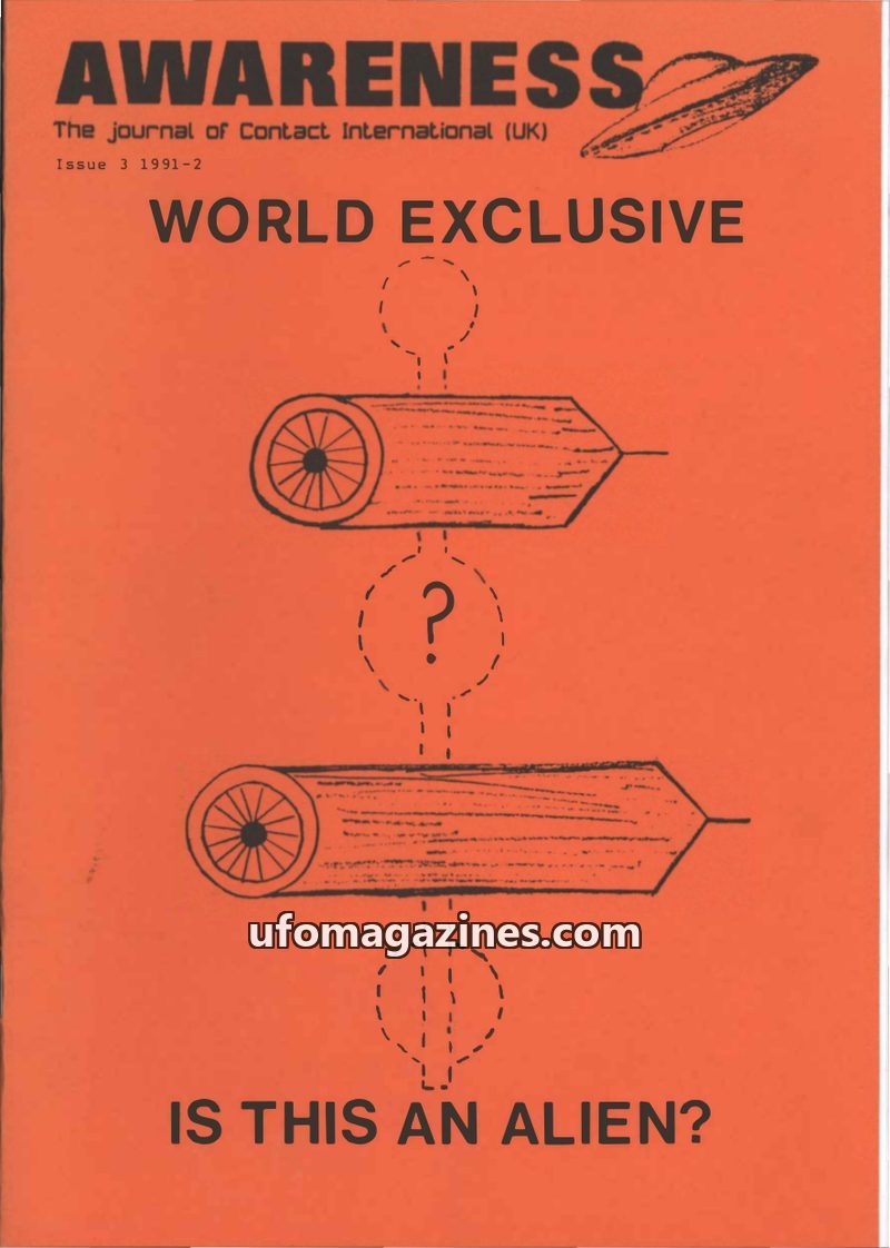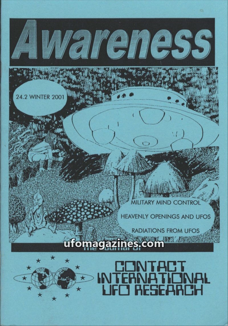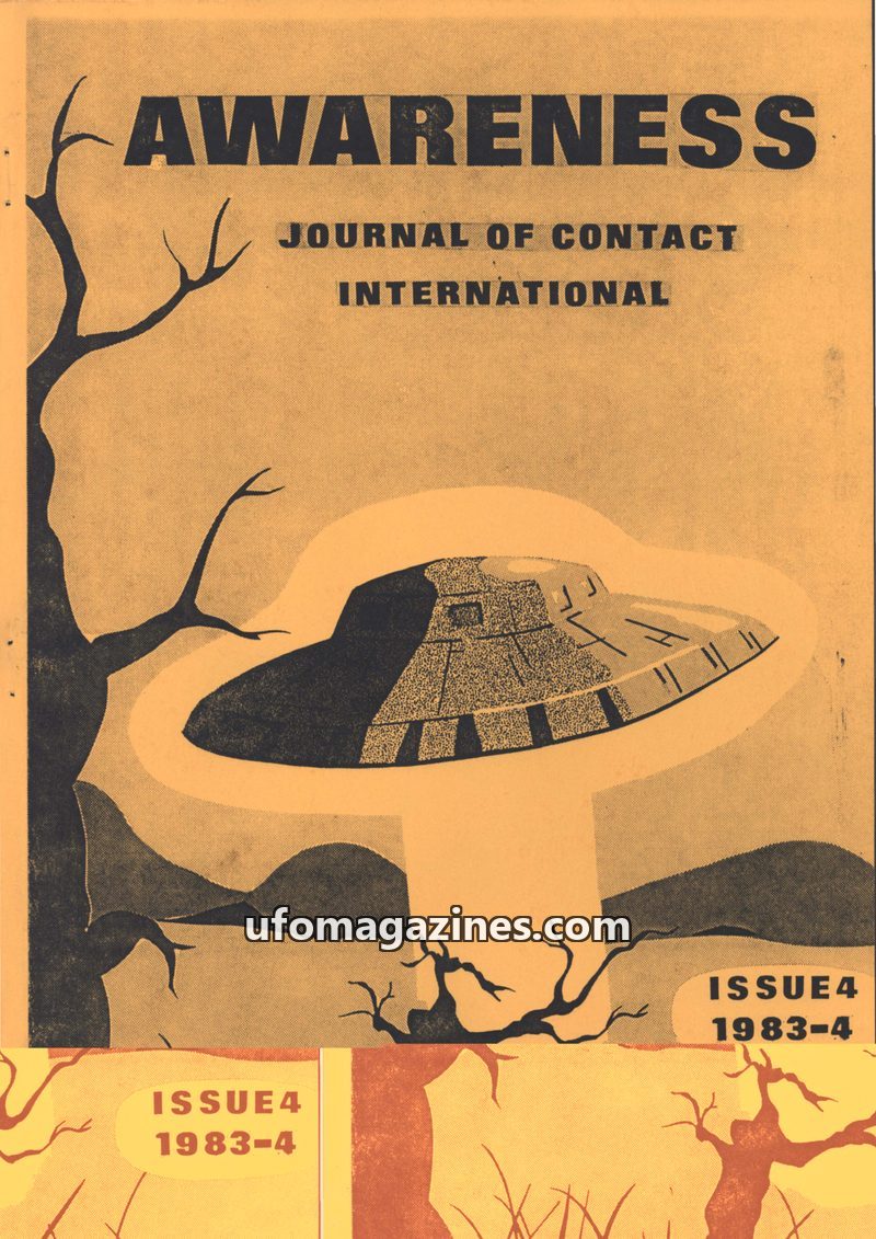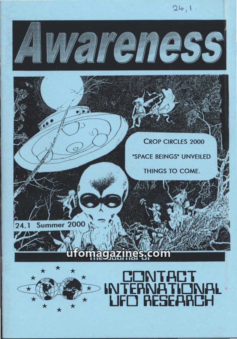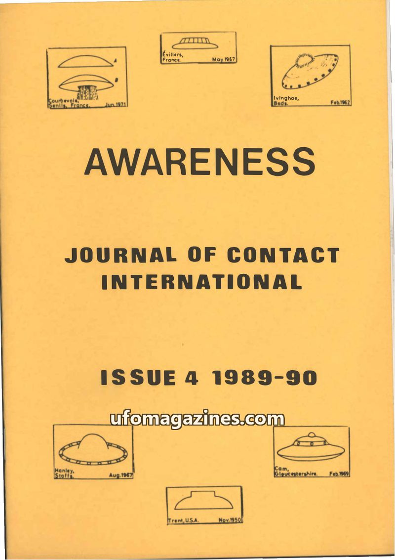 This issue of Awareness, the Journal of Contact International, covers a range of UFO-related topics. The editorial discusses a modest increase in subscription costs due to rising e