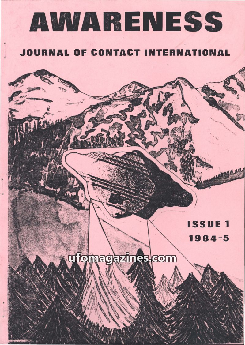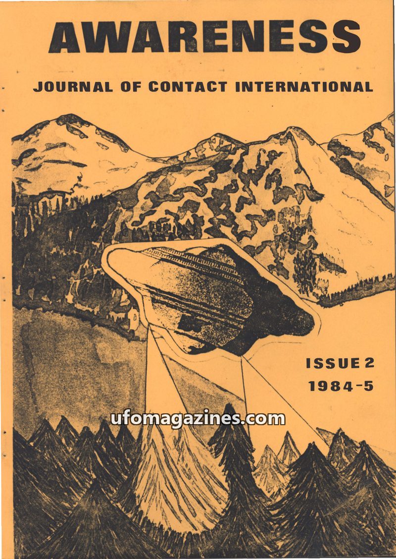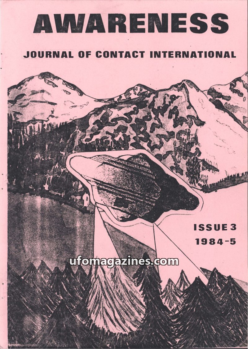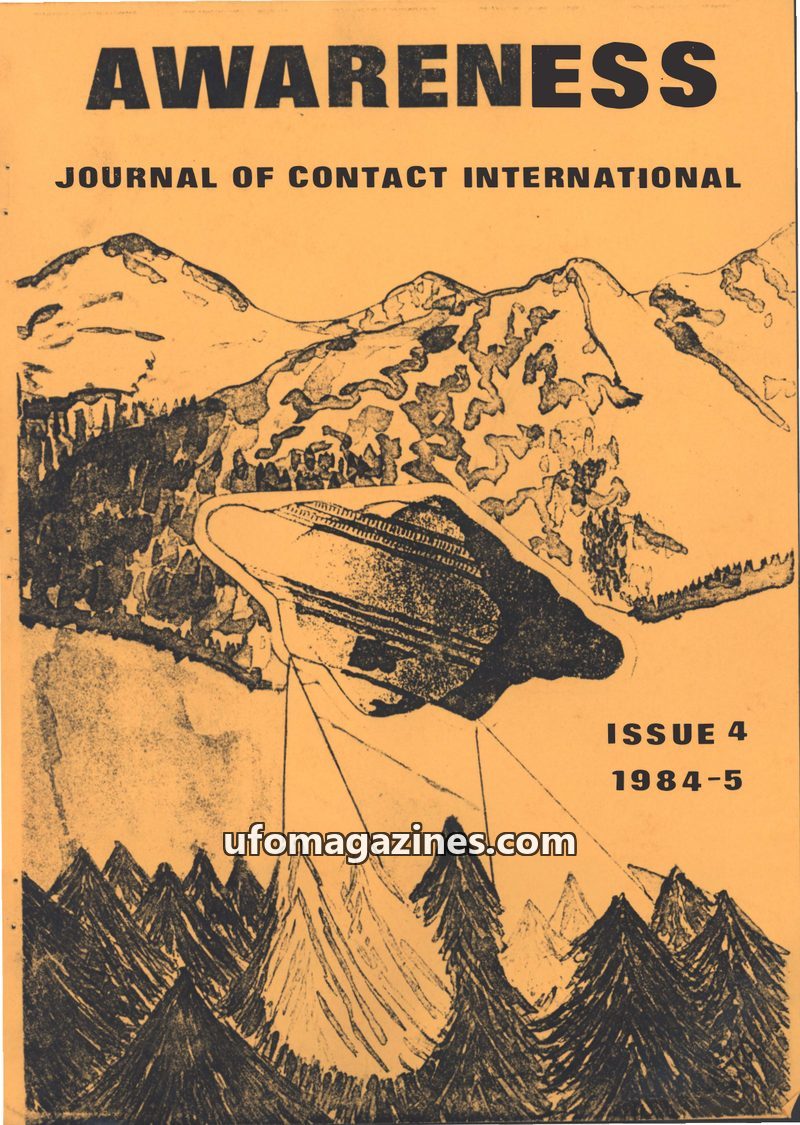 This issue of Awareness, Journal of Contact International, covers the 1984-5 period with a focus on UFO sightings and related phenomena. It details a significant incident on the A4