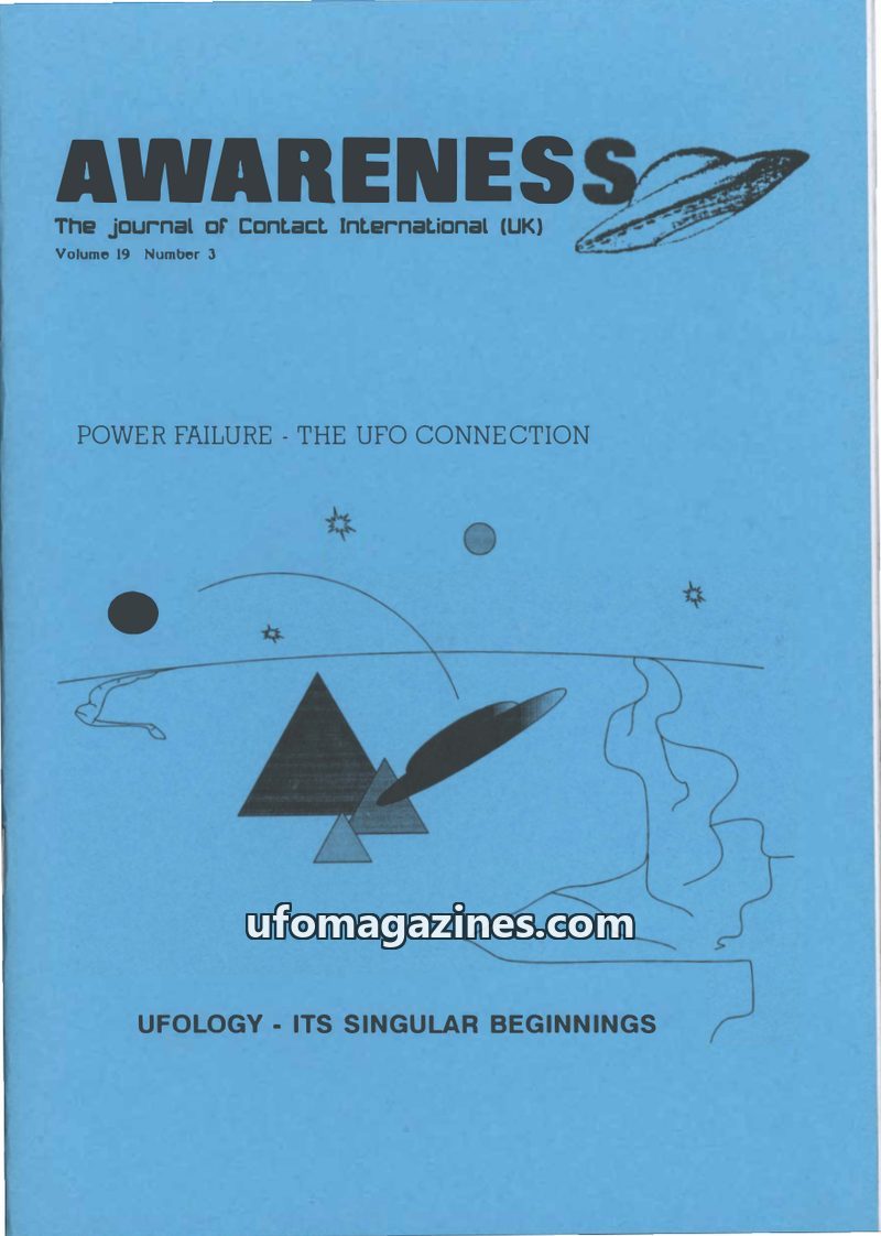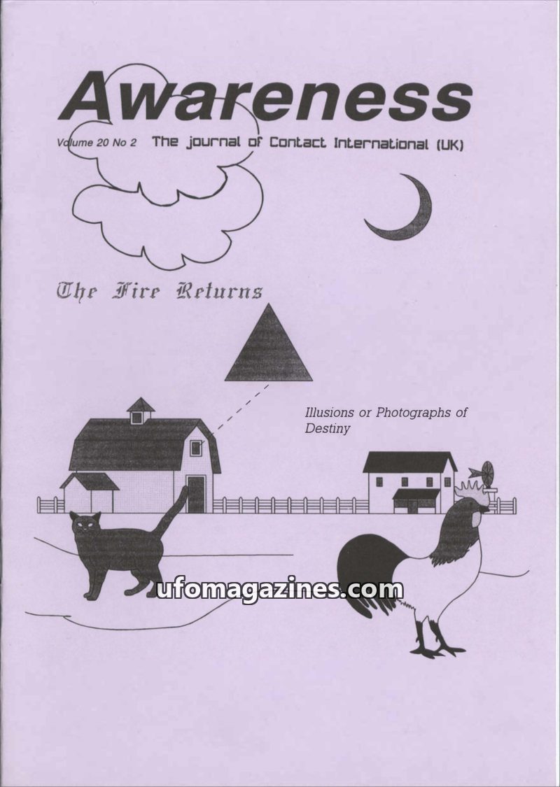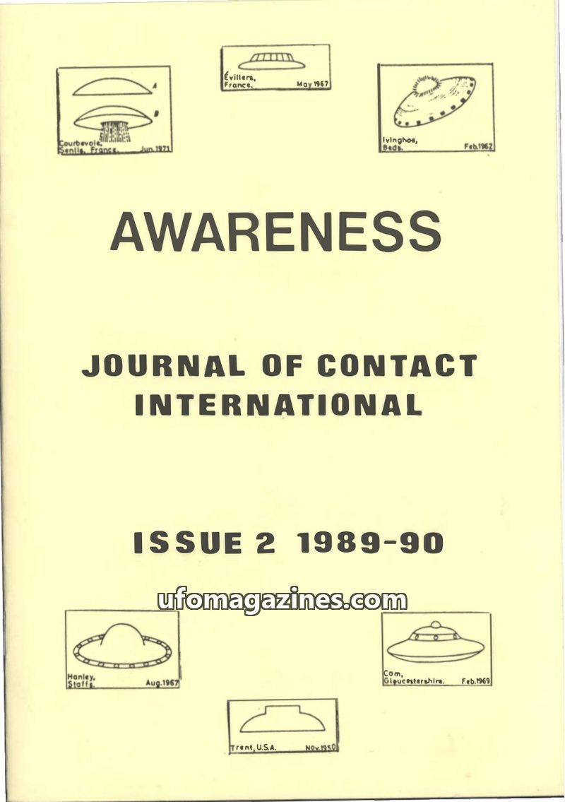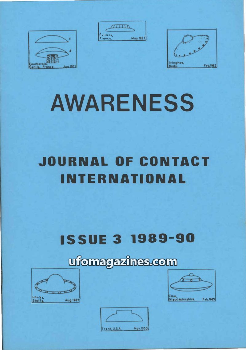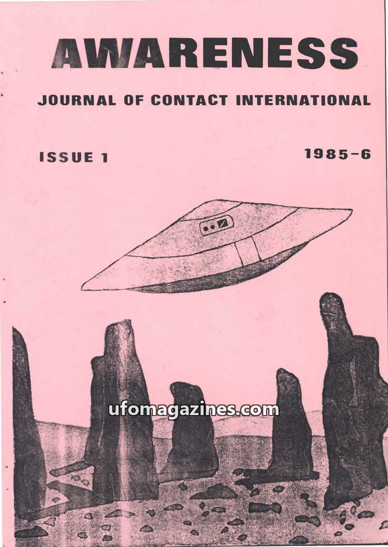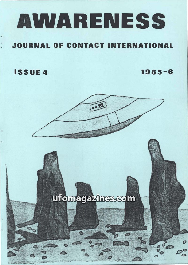 This issue of Awareness, the Journal of Contact International, Volume 14, No. 1 (1985-6), covers UFO sightings in North Wales, including a detailed account by Margaret-Ellen Fry. I