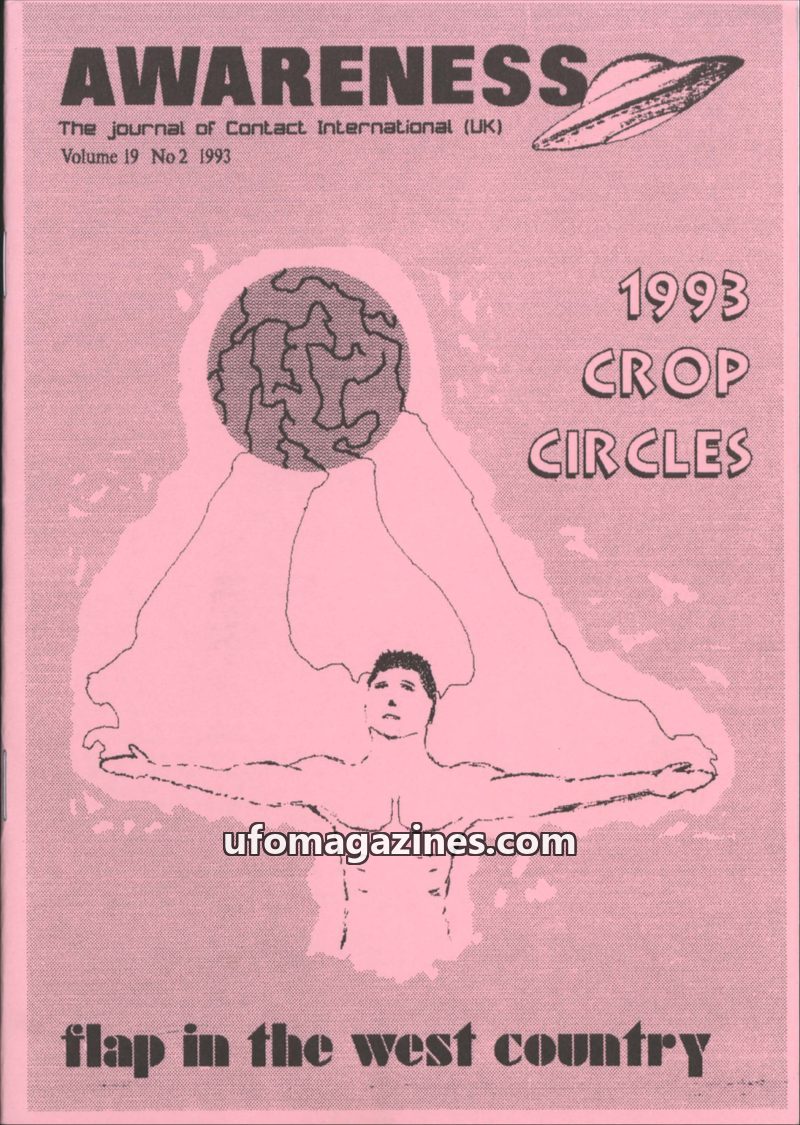 The 1993 issue of Awareness magazine details a significant UFO 'flap' primarily over the West Country of England, with numerous eyewitness accounts of lights and craft. The issue a