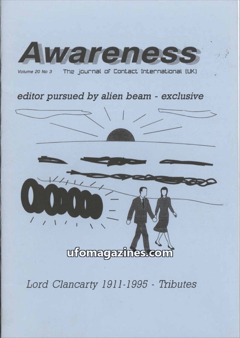 This issue of Awareness magazine features tributes to the late Lord Clancarty (Brinsley Le Poer Trench), founder of Contact International. It also includes articles on the 'editor