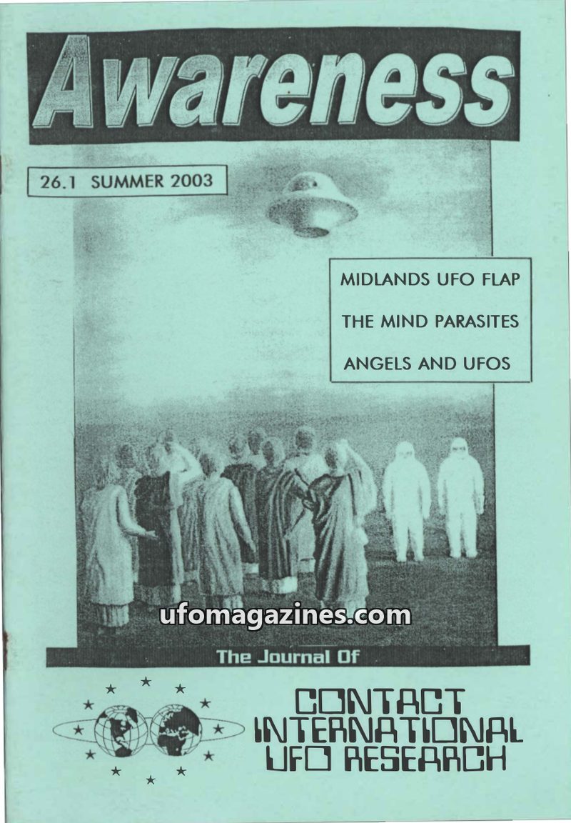 This issue of Awareness magazine from Summer 2003 delves into a 'Midlands UFO Flap' following a single sighting that generated numerous reports. It also explores the controversial