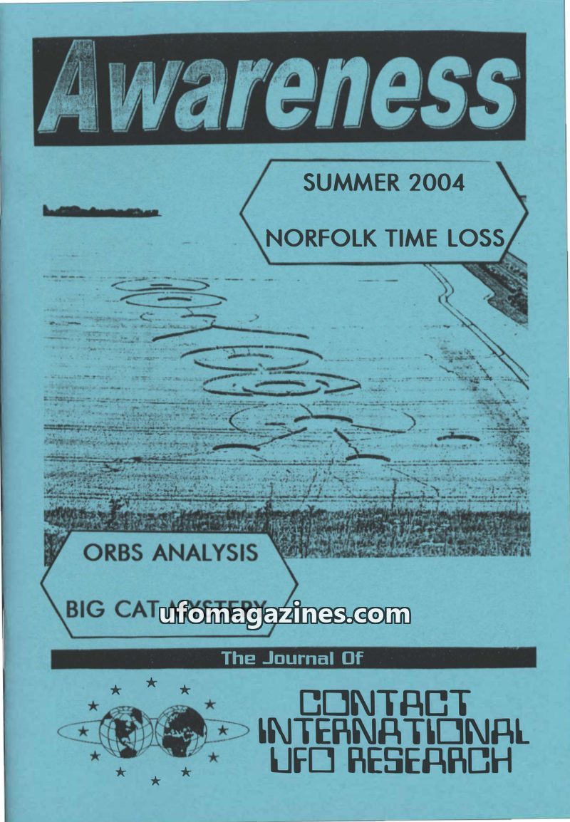 This issue of Awareness magazine from Summer 2004 delves into various unexplained phenomena. It includes an analysis of 'ORBS' over a decade, a personal account of 'missing time' i