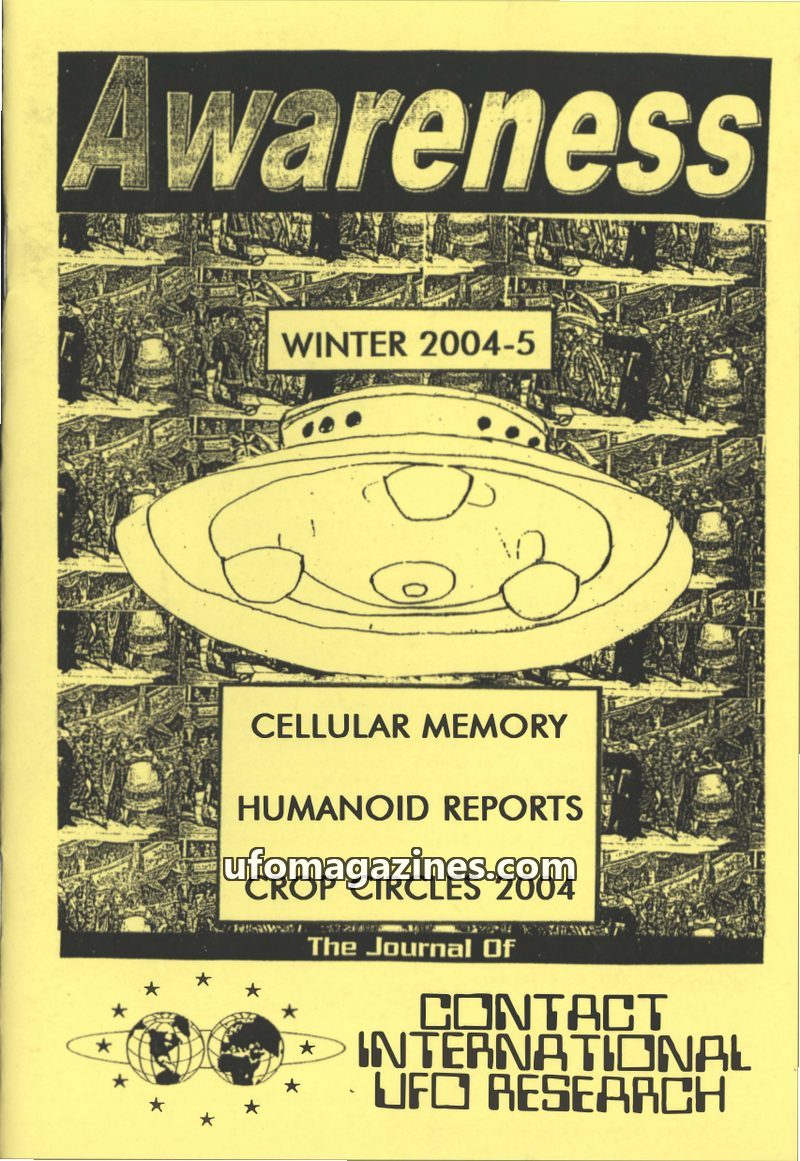 This issue of Awareness magazine, dated January 2005, covers a range of topics including UFO sightings, the phenomenon of cellular memory in organ transplant recipients, humanoid r
