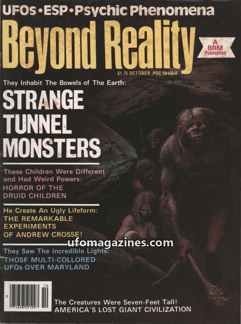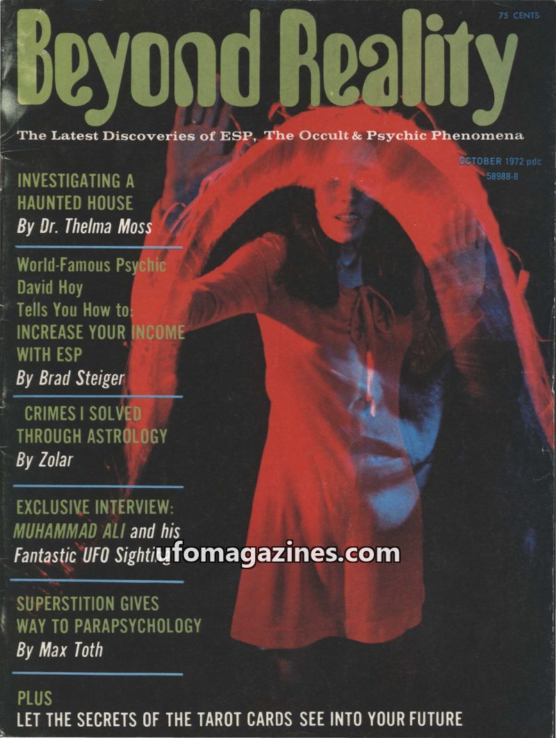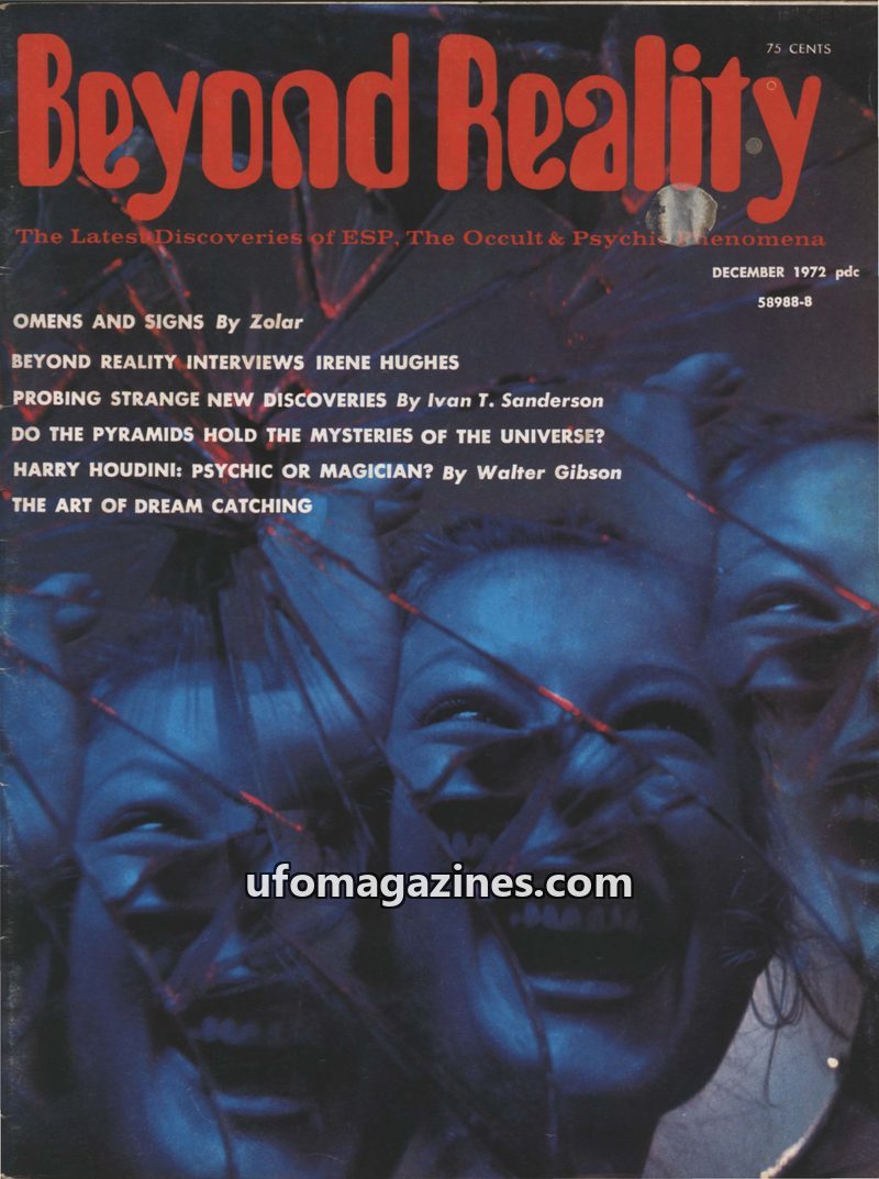This issue of Beyond Reality magazine, Vol. 1 No. 1 from October/November 1972, focuses on ESP, the occult, and psychic phenomena. Featured articles include an investigation of a h