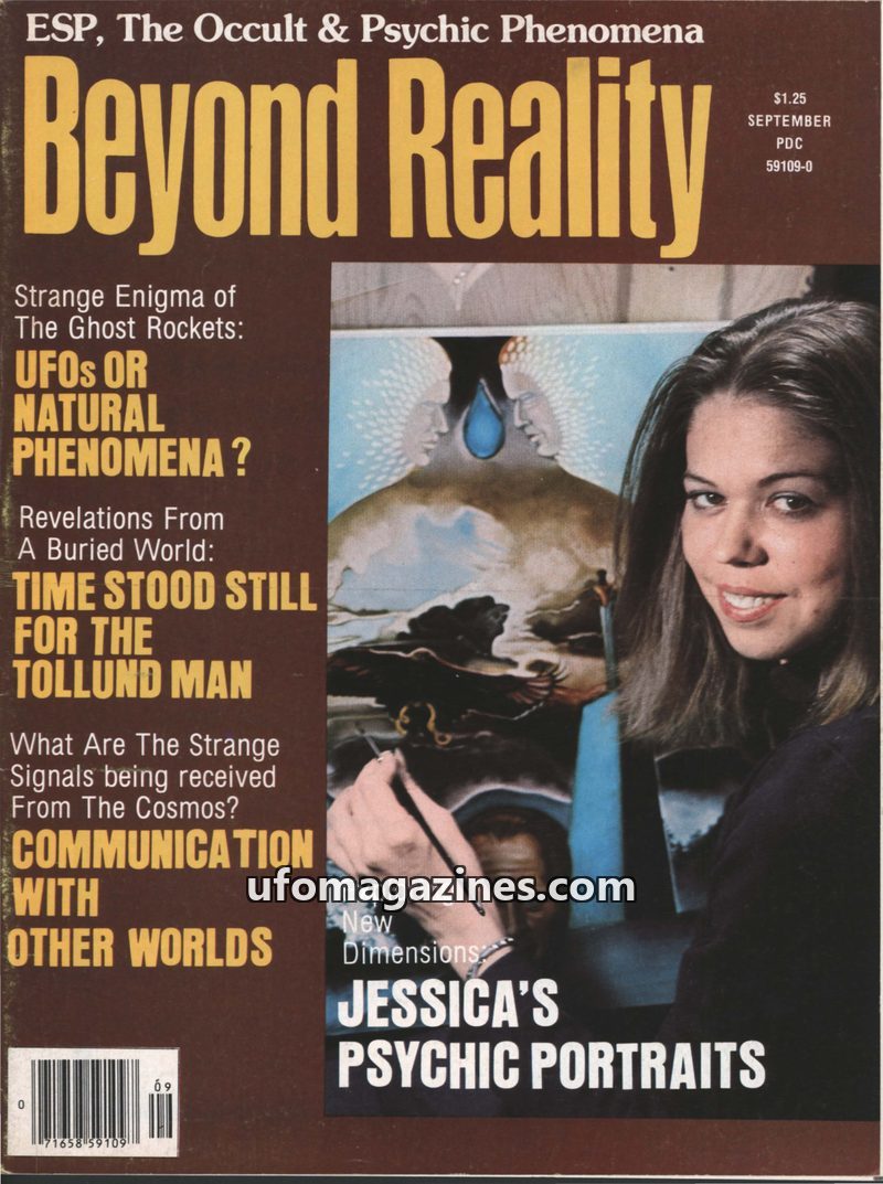 This issue of Beyond Reality magazine, dated September/October 1976, delves into a variety of paranormal and unexplained phenomena. Cover stories include 'Jessica's Psychic Portrai