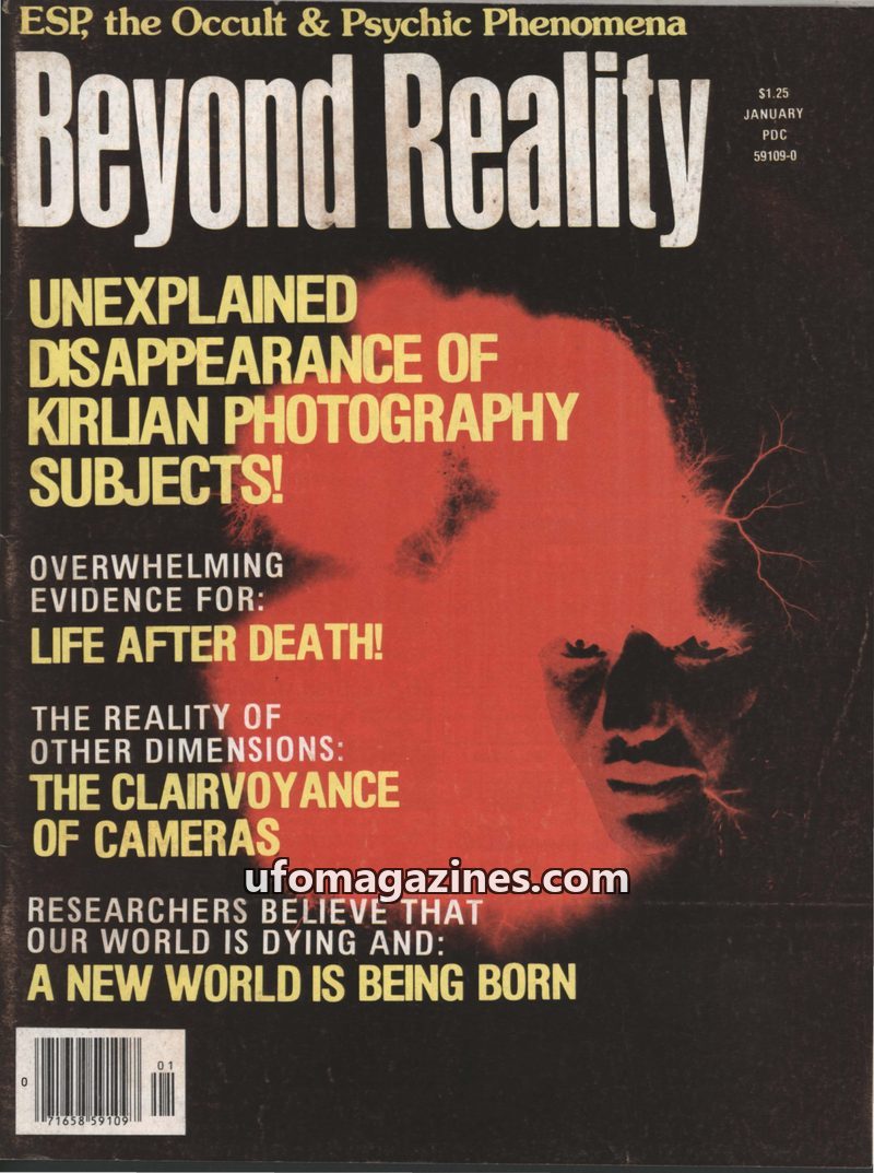 This issue of Beyond Reality delves into various unexplained phenomena. Articles cover the mysterious disappearances of Kirlian photography subjects, the potential for life after d