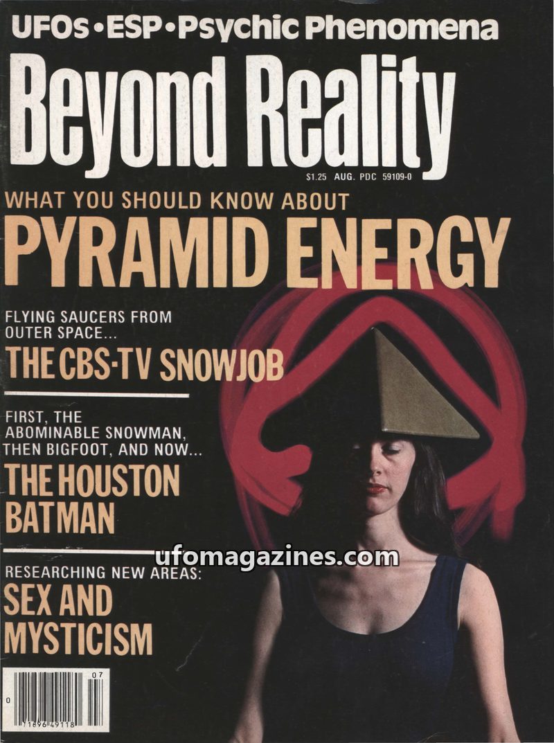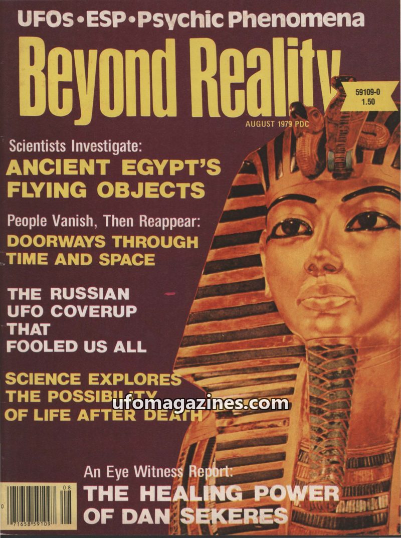 This issue of Beyond Reality magazine, dated July/August 1979, delves into various paranormal and unexplained phenomena. Cover stories include an investigation into flying objects