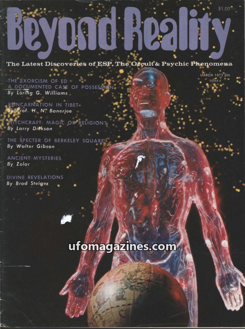 This issue of Beyond Reality magazine, dated March 1973, delves into various aspects of ESP, the occult, and psychic phenomena. Featured articles include 'The Exorcism of Ed,' a do
