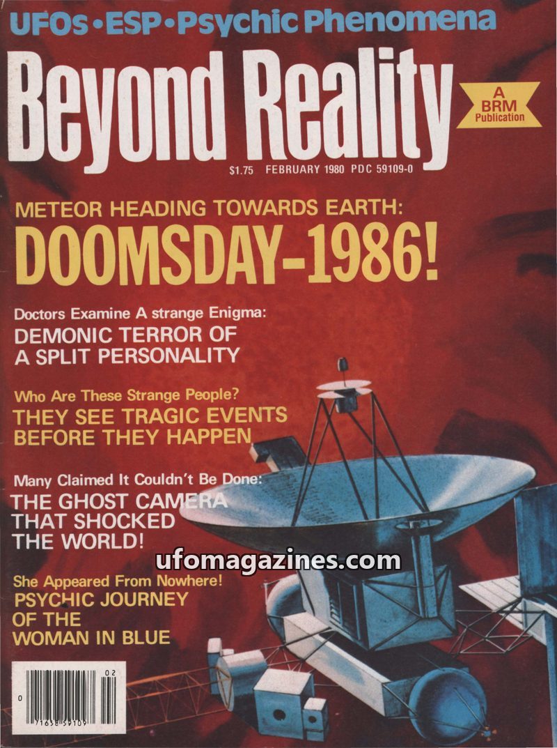 This issue of Beyond Reality magazine, dated January/February 1980, covers a range of paranormal and speculative topics. Headlines include a 'Doomsday-1986!' prophecy related to a