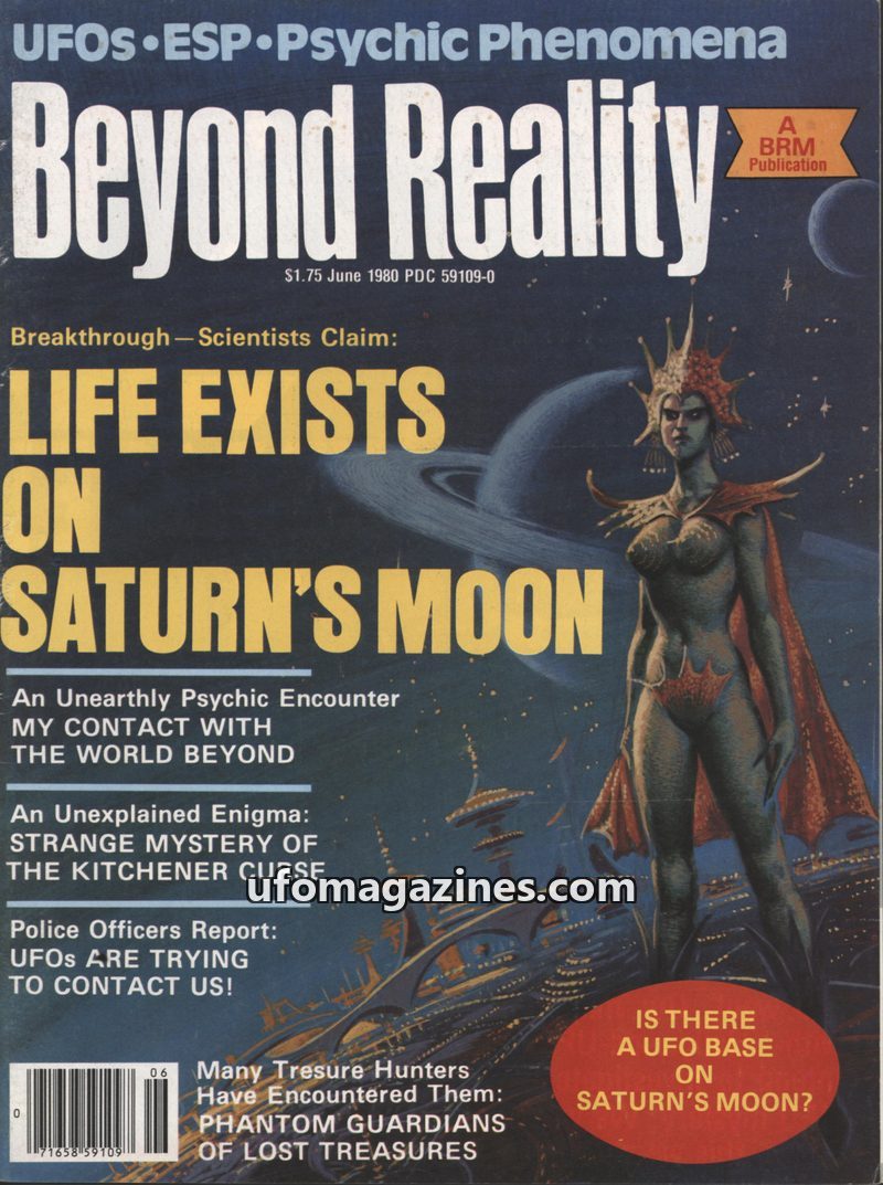 This issue of Beyond Reality magazine, dated May/June 1980, features a cover story claiming scientists have found evidence of life on Saturn's Moon. Other articles delve into psych