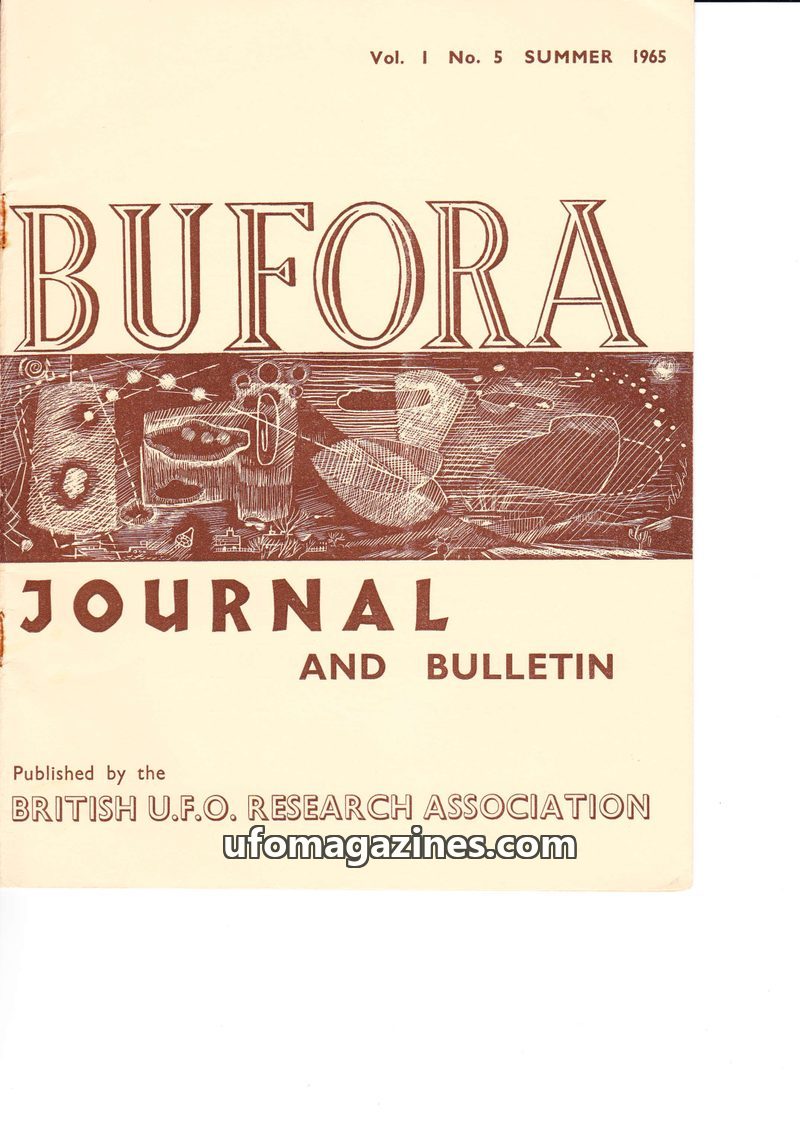 This issue of the BUFORA Journal and Bulletin from Spring 1965 focuses on the state of UFO research, advocating for a Global International Federation of UFO Groups. It highlights t